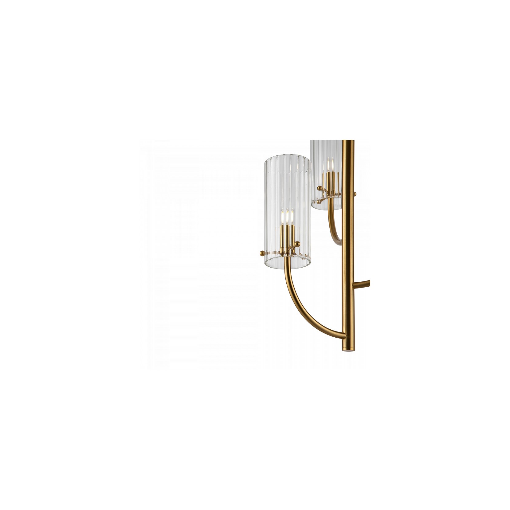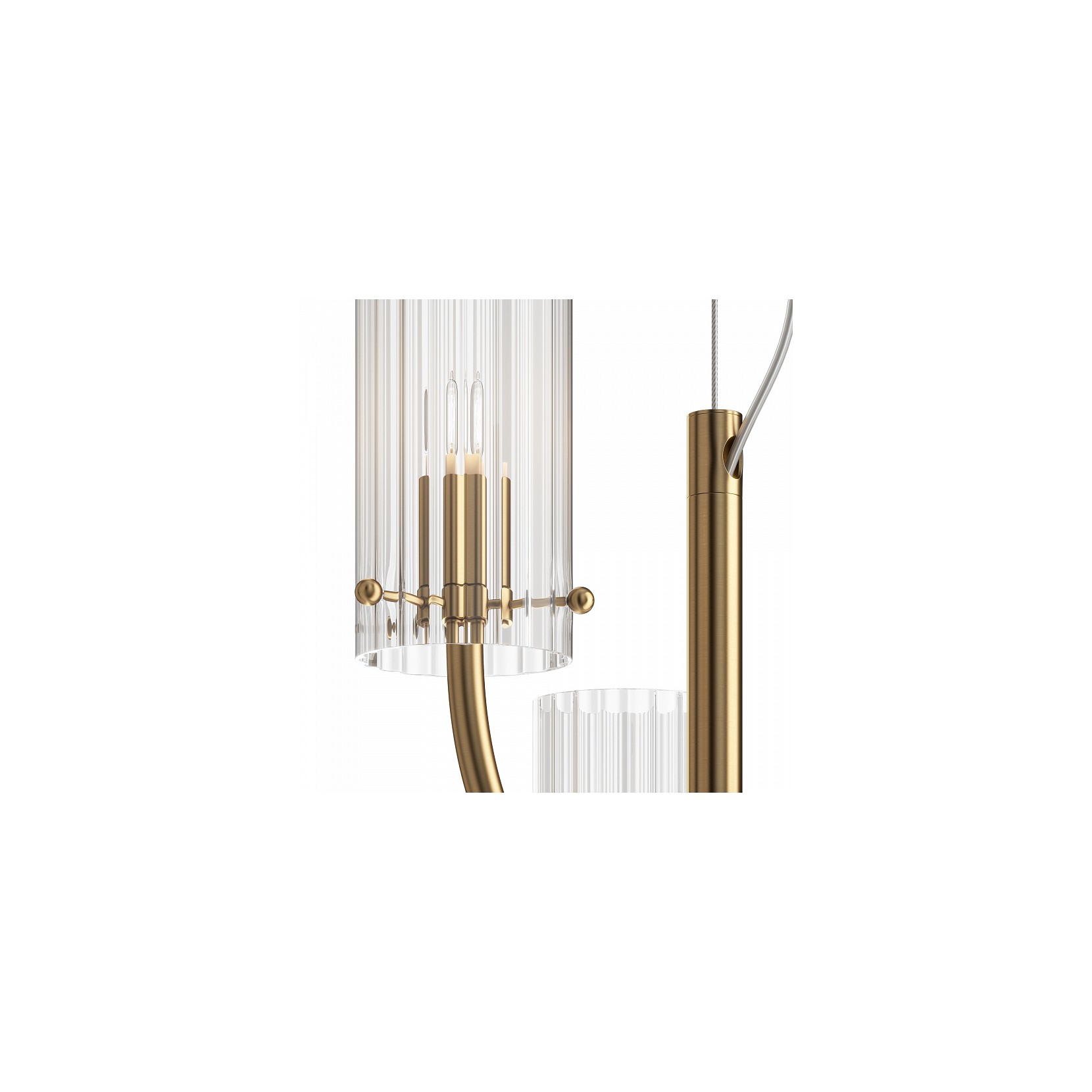 ARCO and the hanging lamp with metal structure in brass finish. The diffusers are in blown glass with a striped pattern. Arco consists of a series of sconces and hanging lamps. The height is rogolable from the bar.
