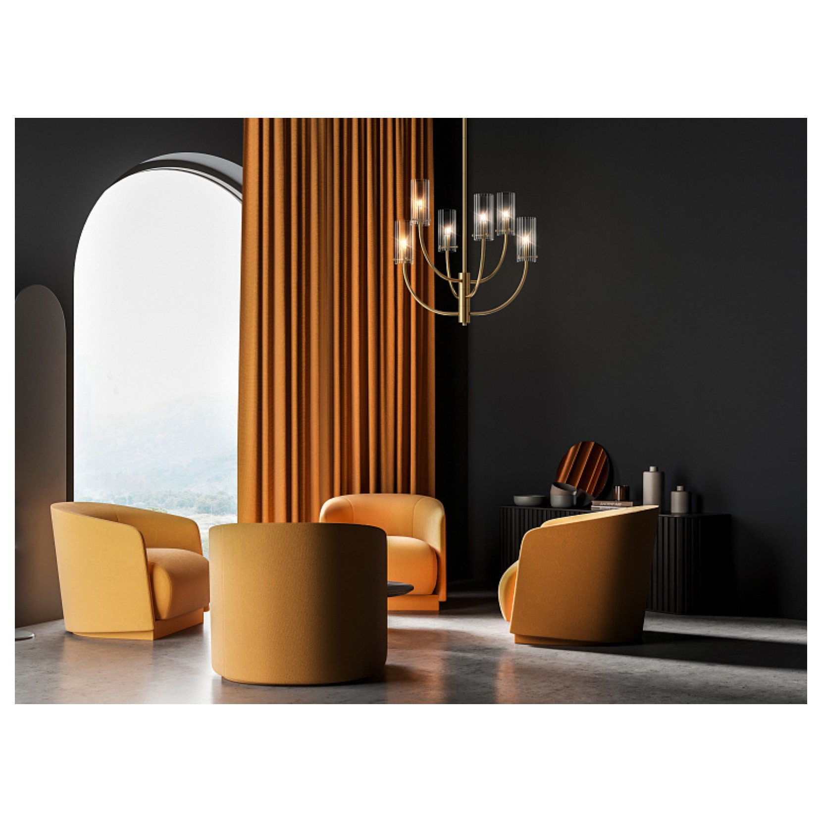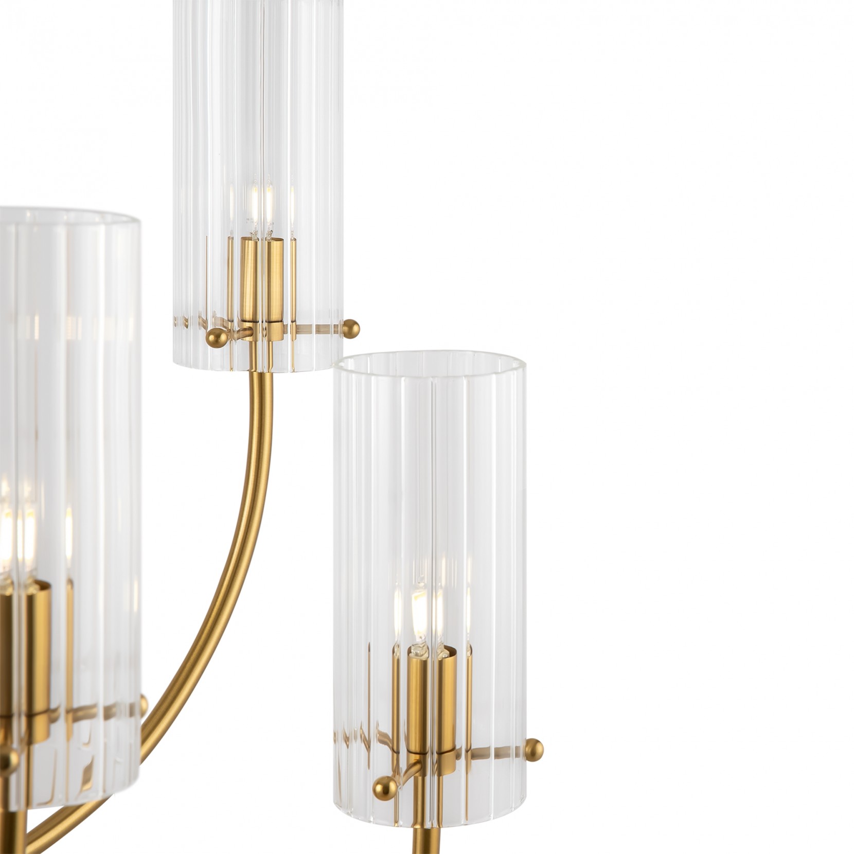 ARCO and the hanging lamp with metal structure in brass finish. The diffusers are in blown glass with a striped pattern. Arco consists of a series of sconces and hanging lamps. The height is rogolable from the bar.