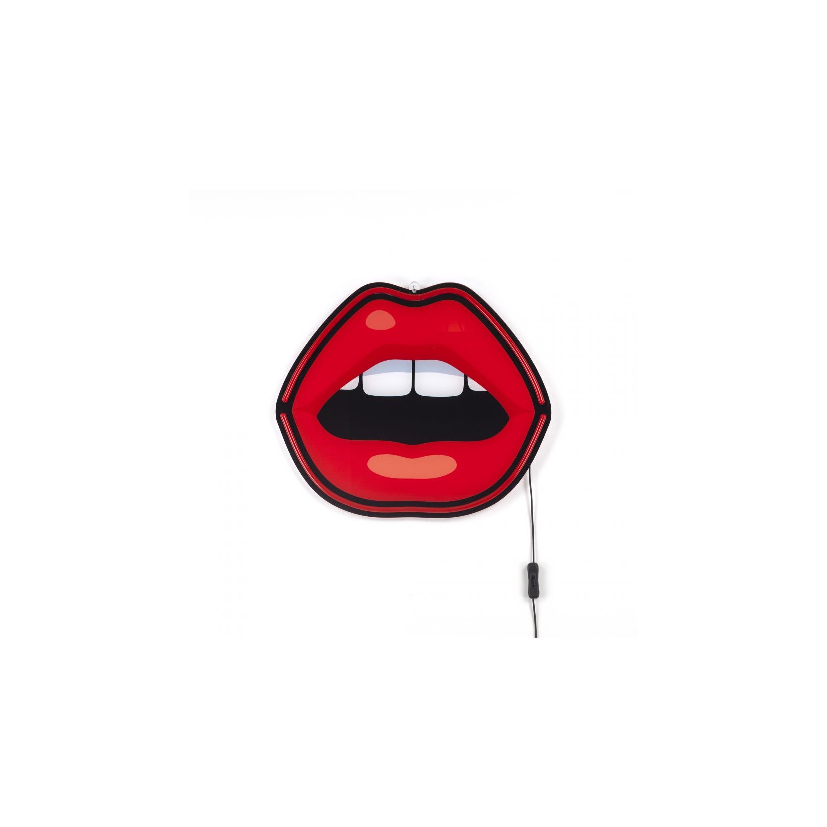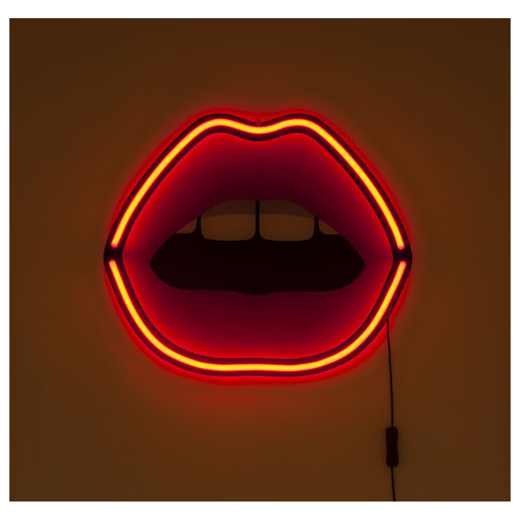 The NEON SIGNS LED wall lamp is presented with an eye-catching graphic signed by the designer Studio Job.