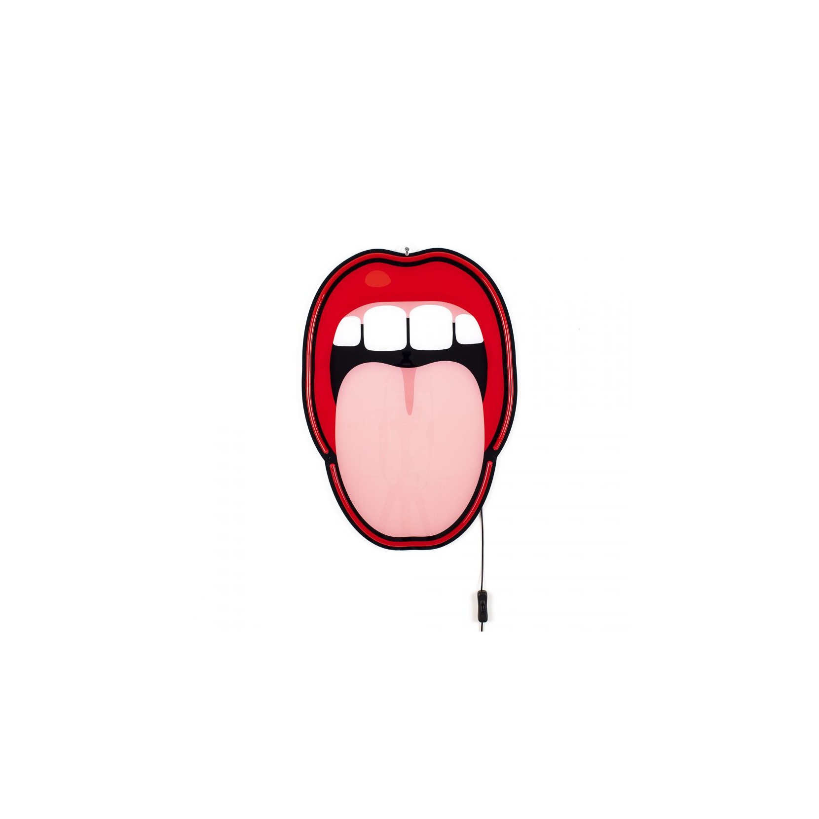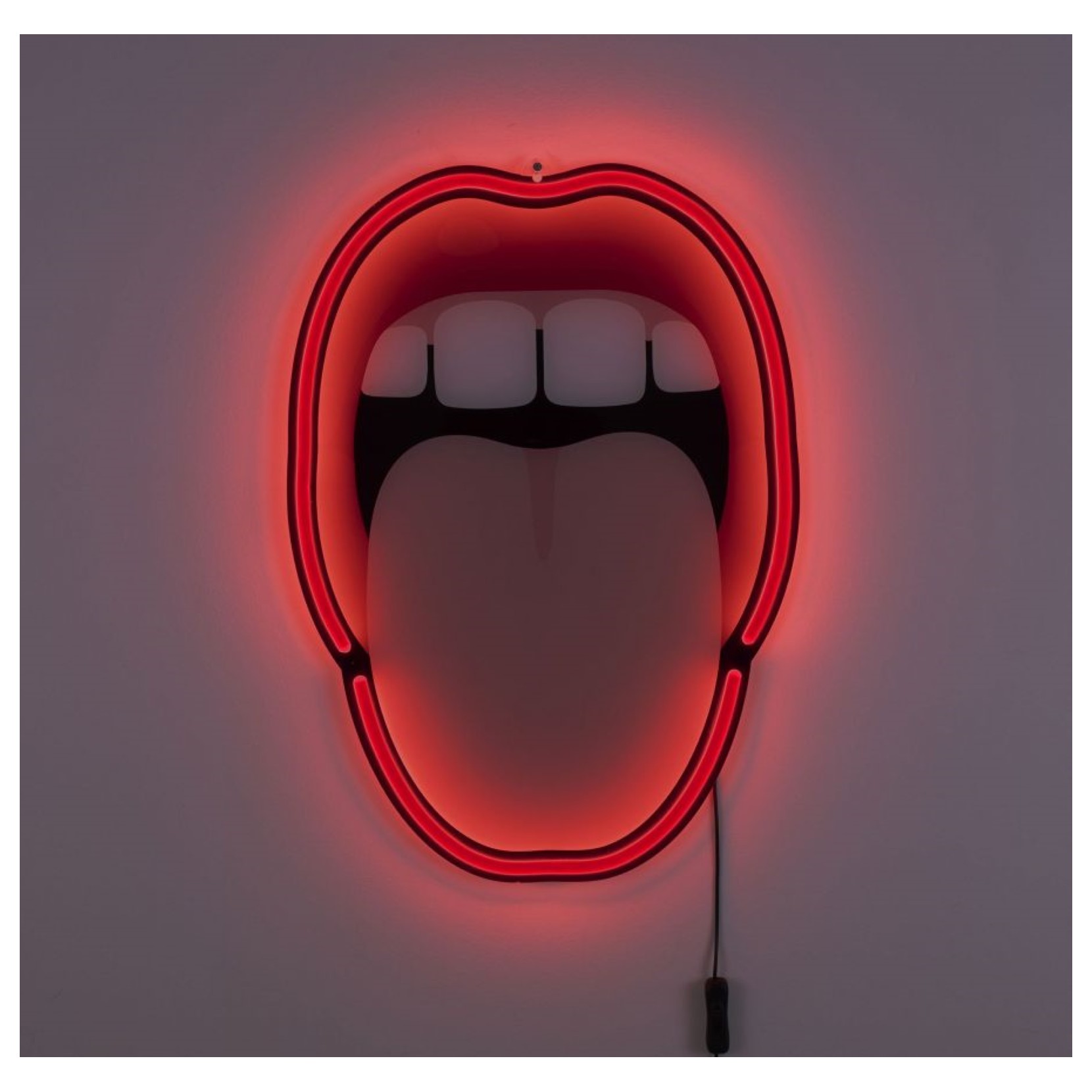 The NEON SIGNS LED wall lamp is presented with an eye-catching graphic signed by the designer Studio Job.