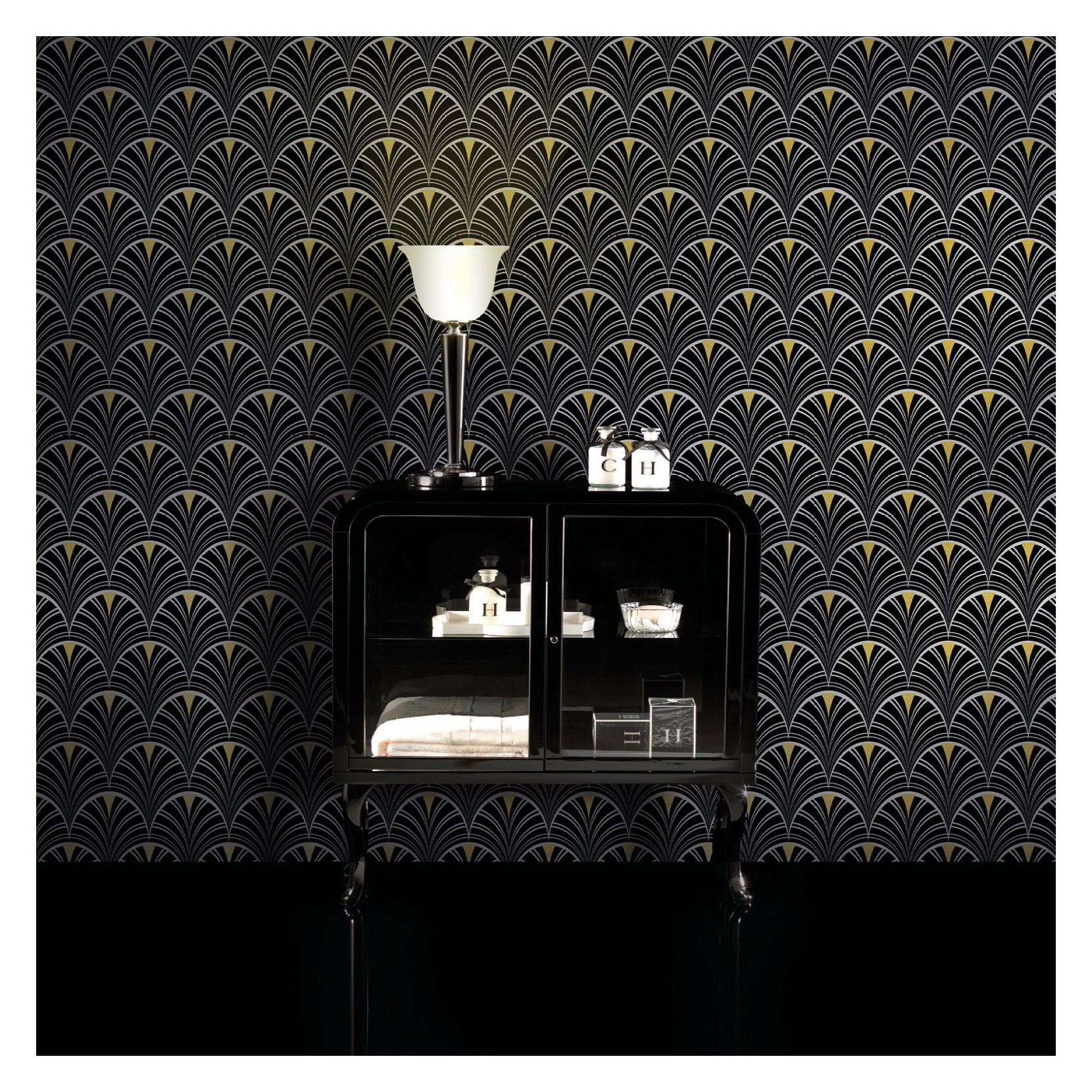 Very particular wallpaper with a very compost geometric pattern inspired by Art Deco.