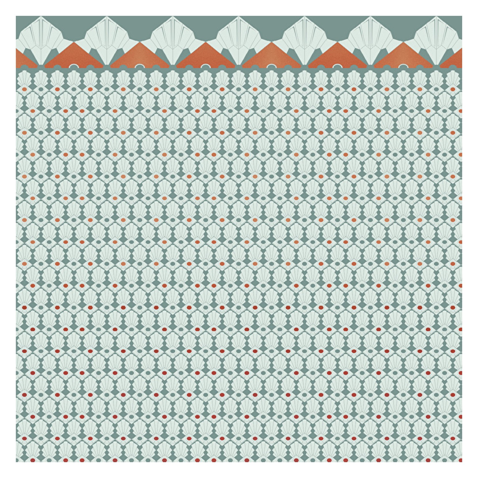American inspiration for a wallpaper with geometric patterns, enriched by an elegant upper border.  The version is available in different colours. With a particular design it is ideal for a particularly refined environment, private homes or boutique hotels.