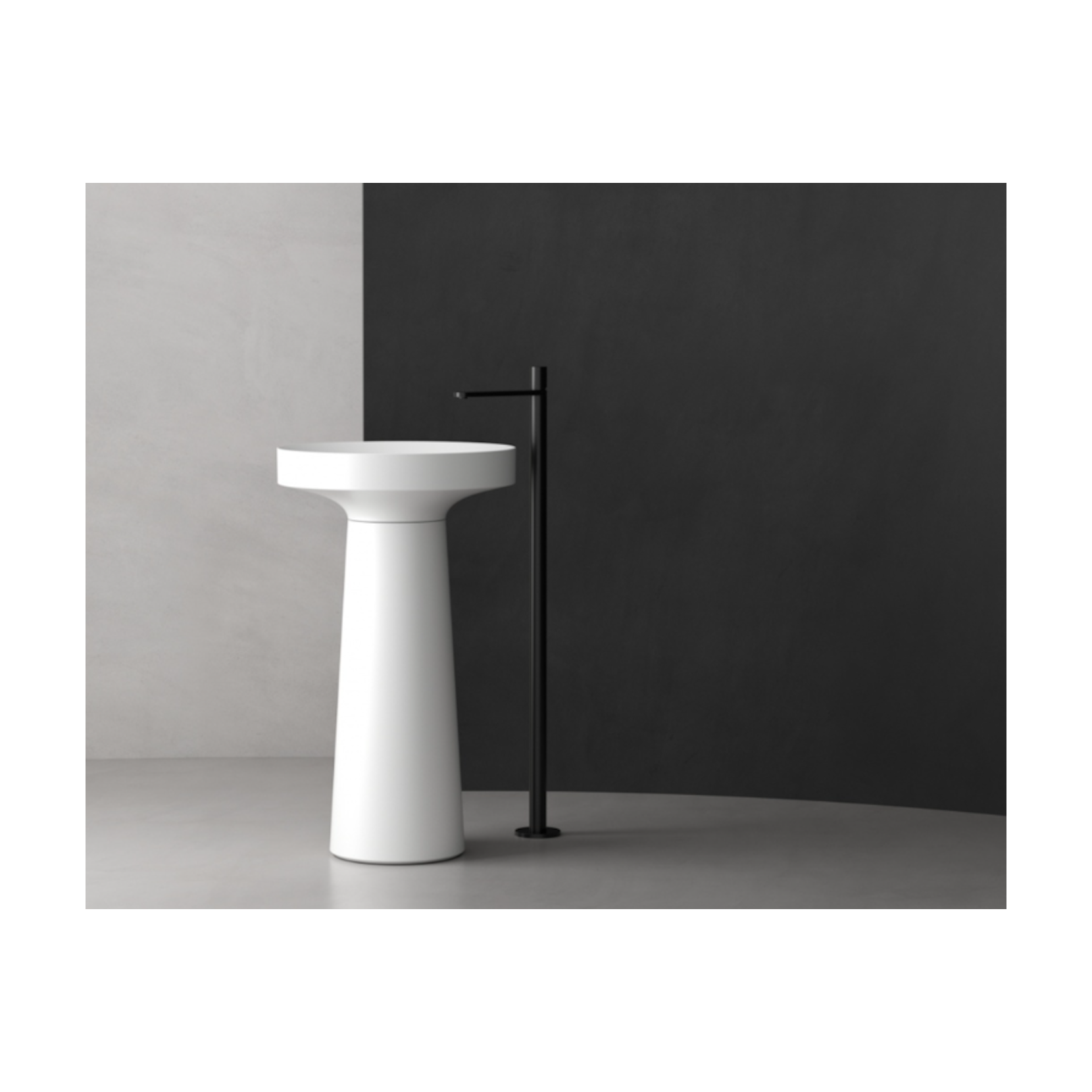 VALDAMA Eye - Freestanding ceramic washbasin with wall drain.