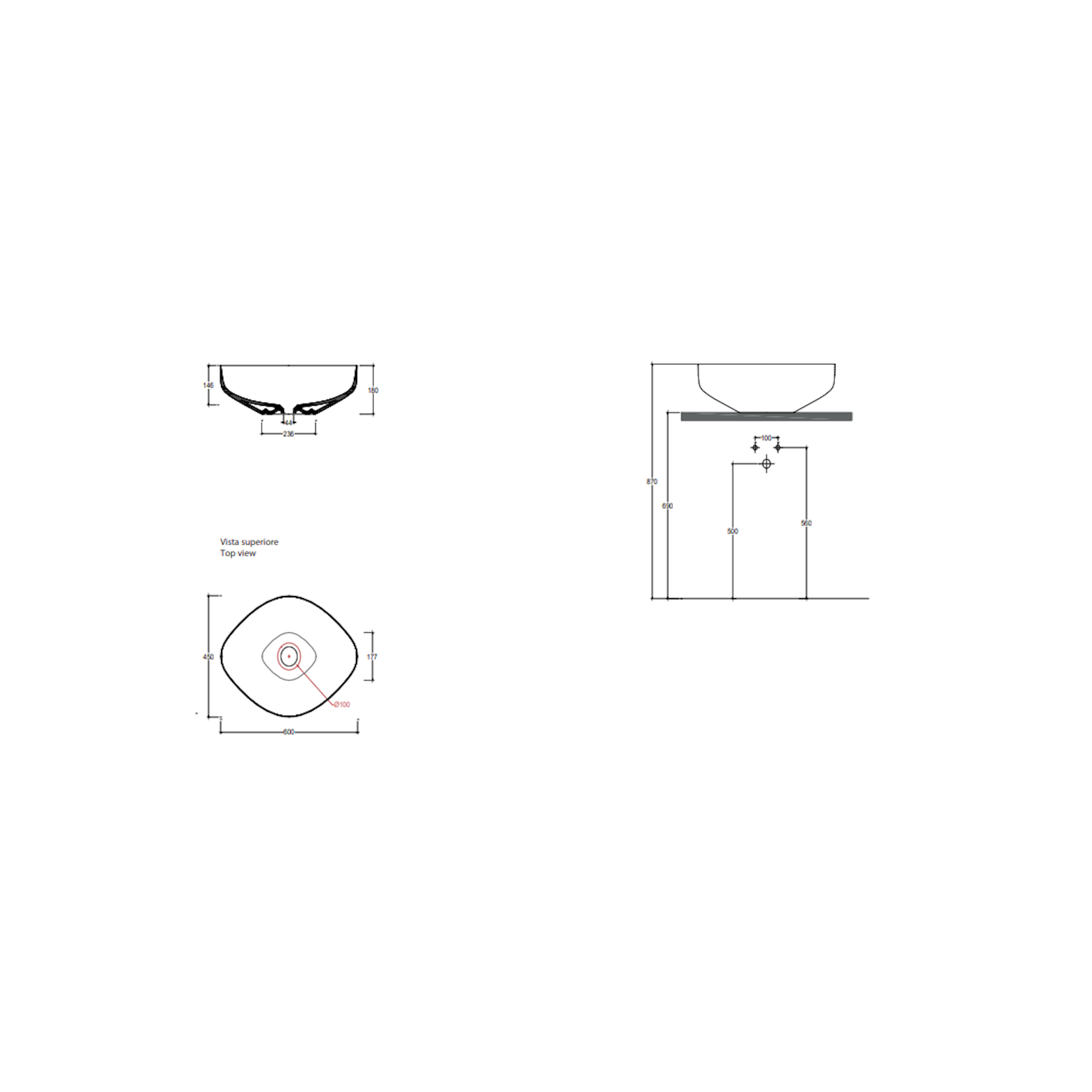 VALDAMA Top - Ceramic countertop basin 60 x 45 h18