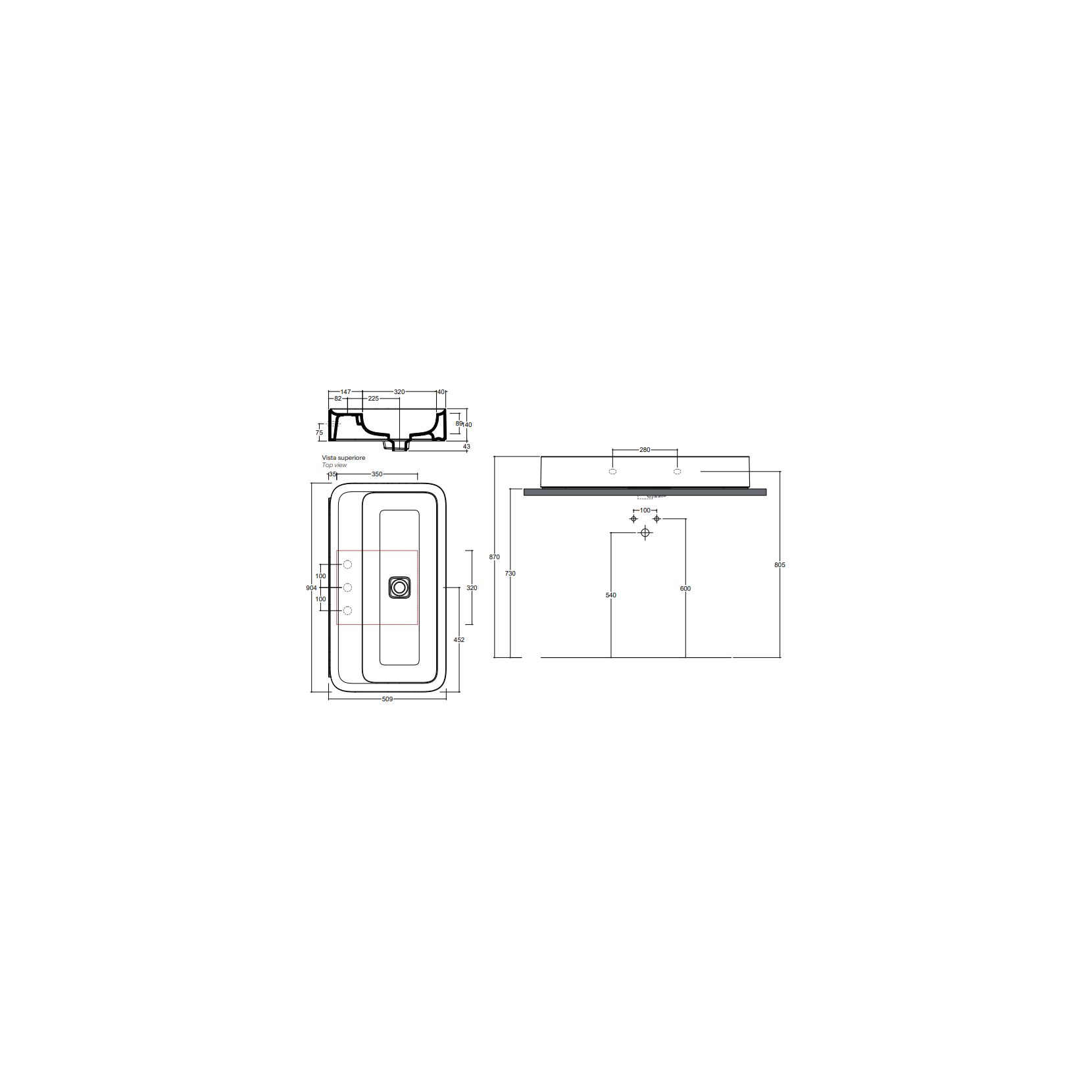 VALDAMA Cameo - Ceramic washbasin for support and suspended 90 x 50 h14. Sink with 3 holes
