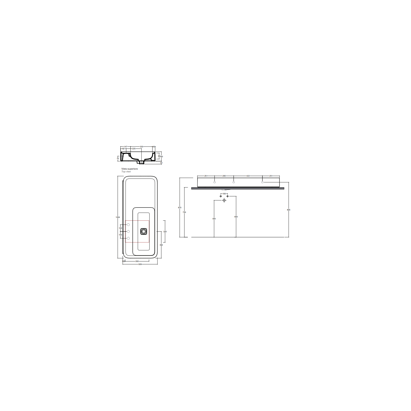 VALDAMA Cameo - Ceramic washbasin for support and suspended 120 x 50 h14.Sink with 3 holes.