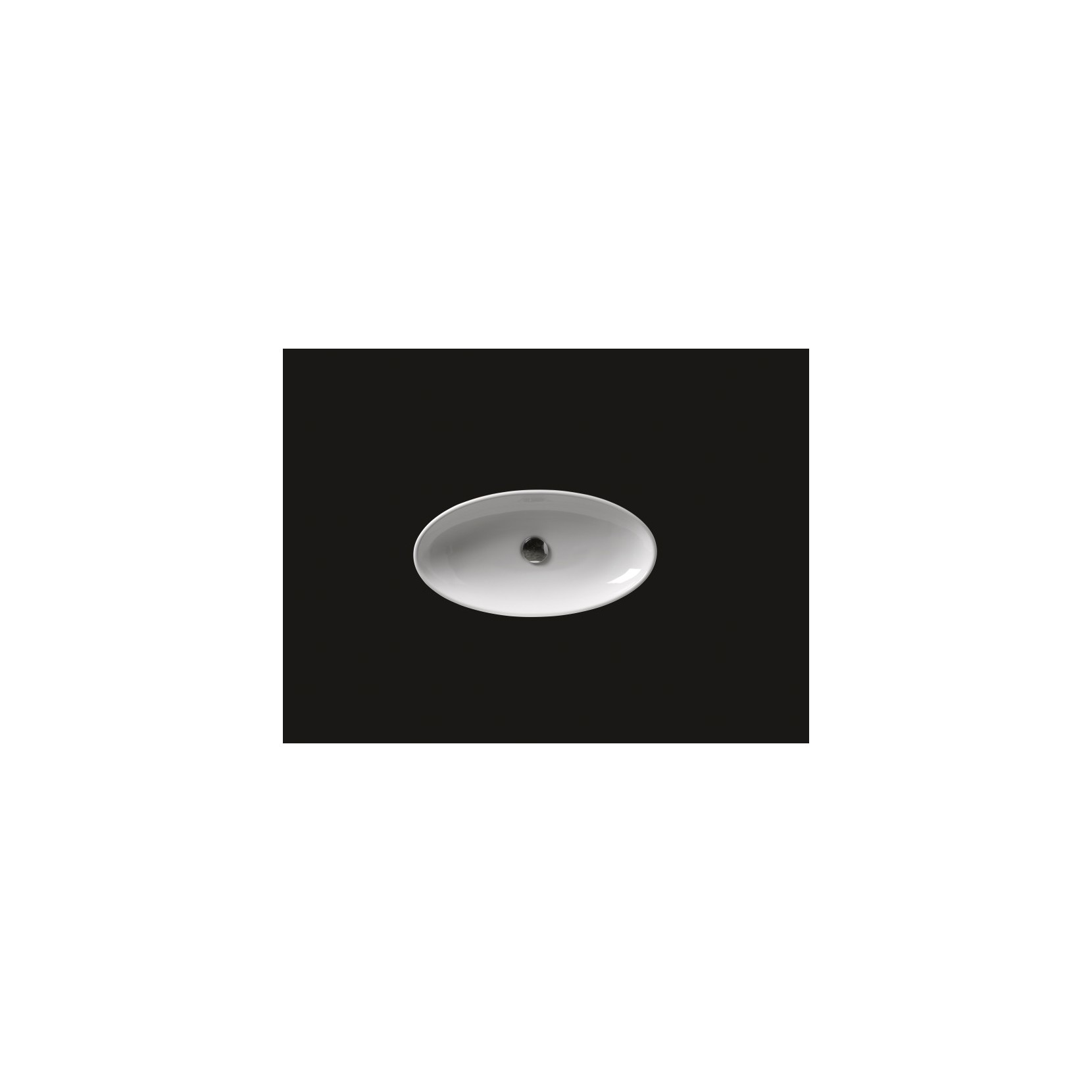 Overtop/undertop oval basin in polished white ceramic.