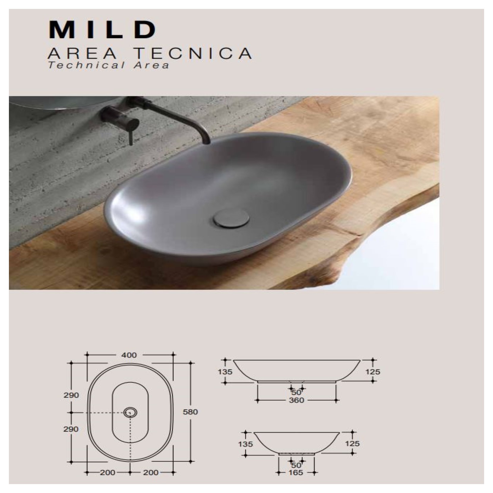 Vitruvit MILD Countertop Washbasin cm 58x40
