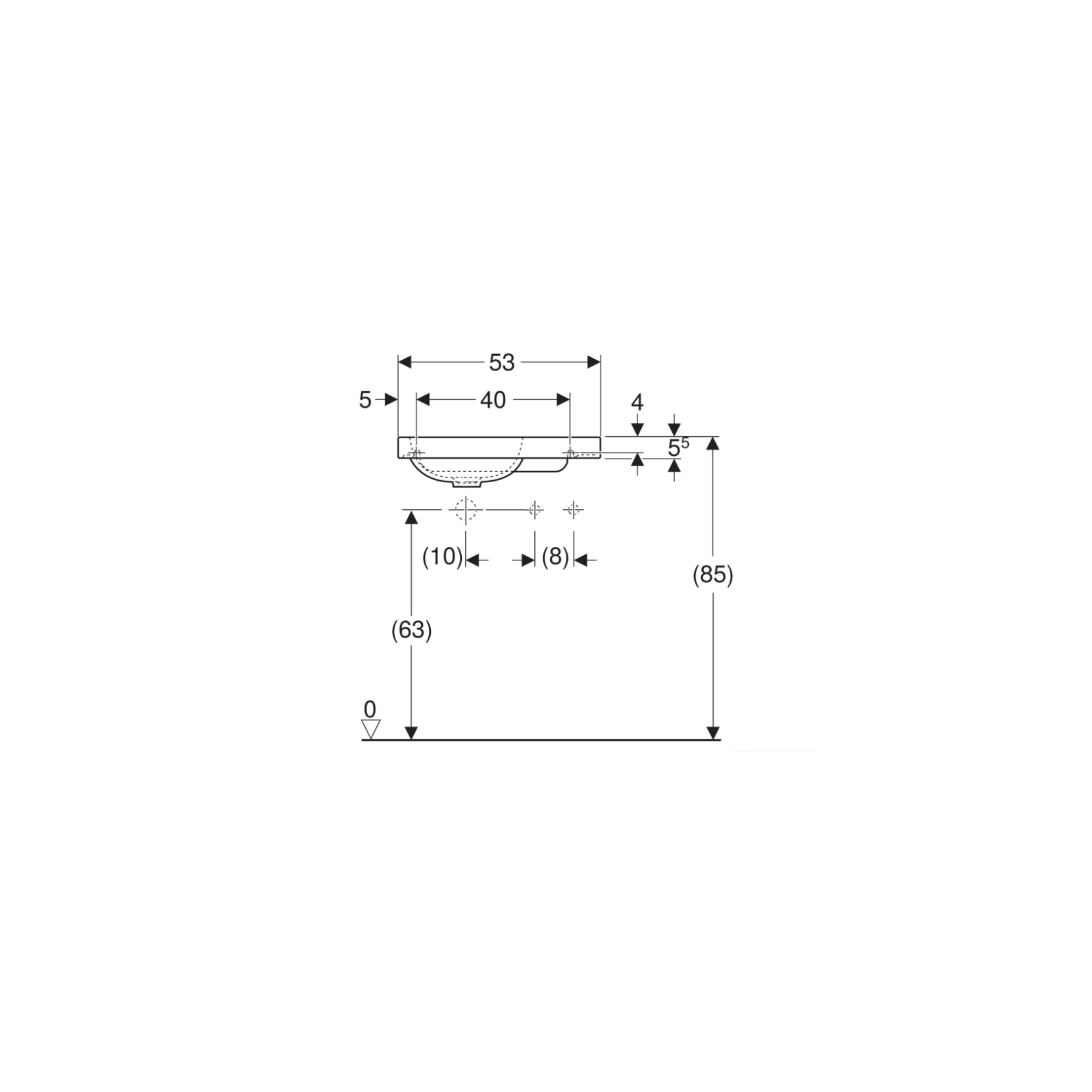 Geberit iCon, Hand wash with asymmetric shelf on the right cm 53