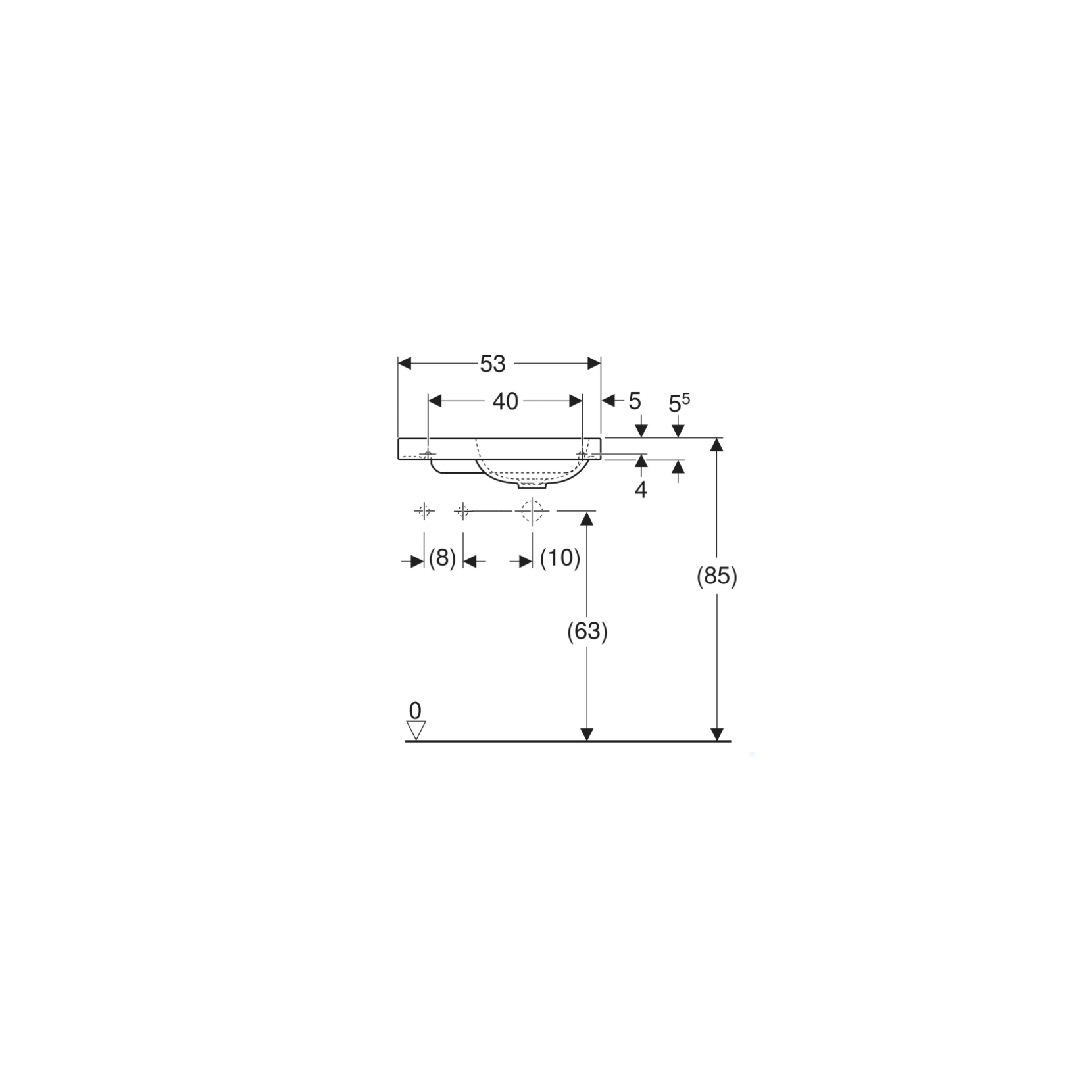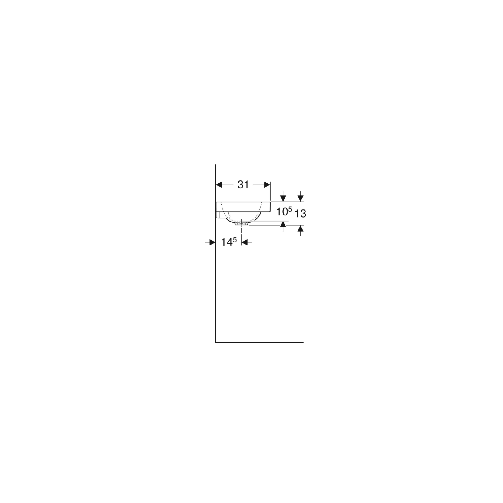 Geberit iCon, Hand wash with shelf 53 cm asymmetric left with hole