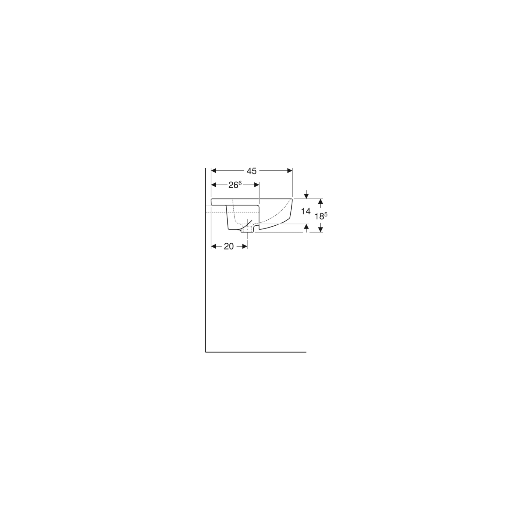 Geberit Variform In Set, Semi-recessed square washbasin 55