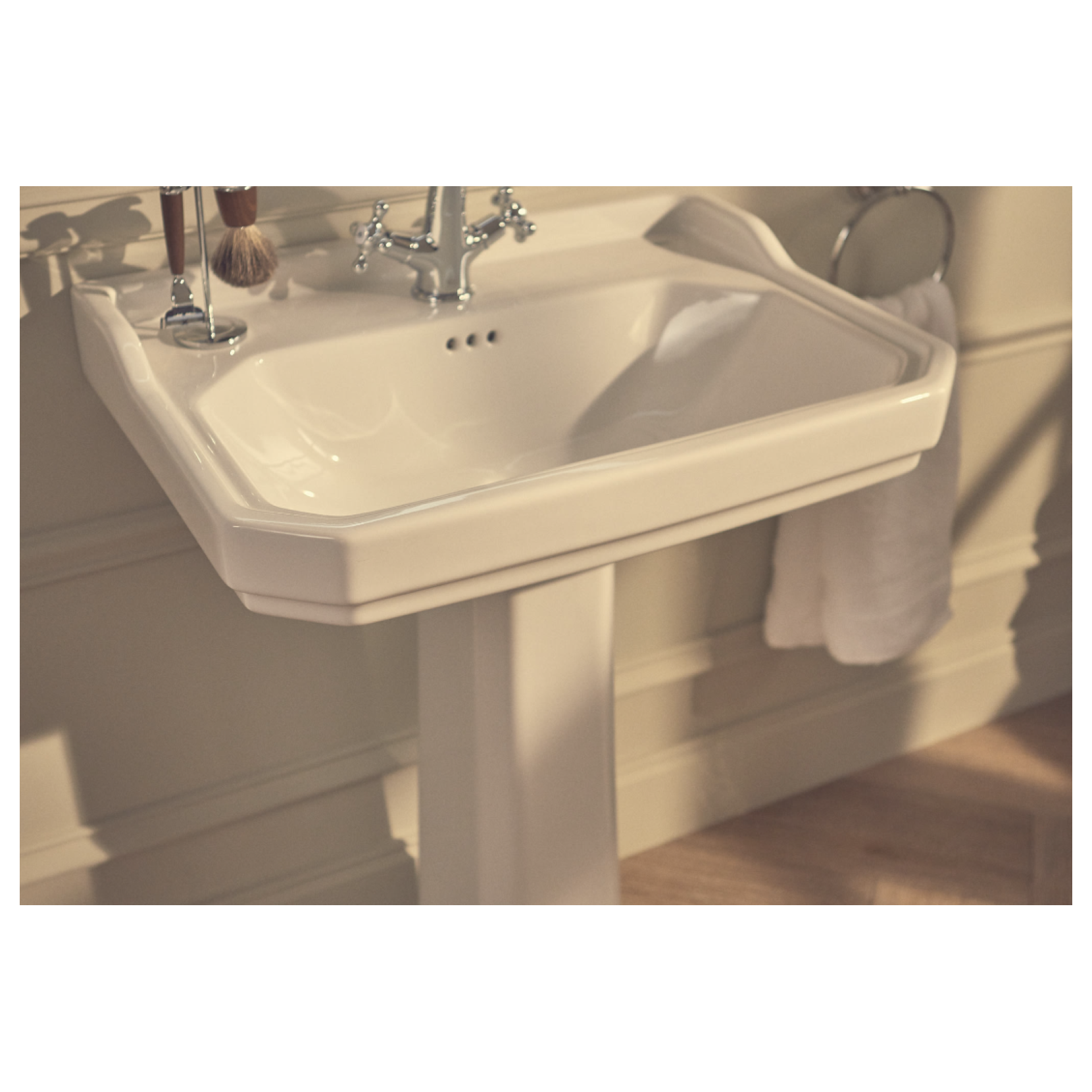 The Carmen washbasin proposed by Roca is a tribute to the '40s style, revisited with a clear vintage porcelain character. The wall washbasin for column comes with a fixing set with 1 hole for the taps.