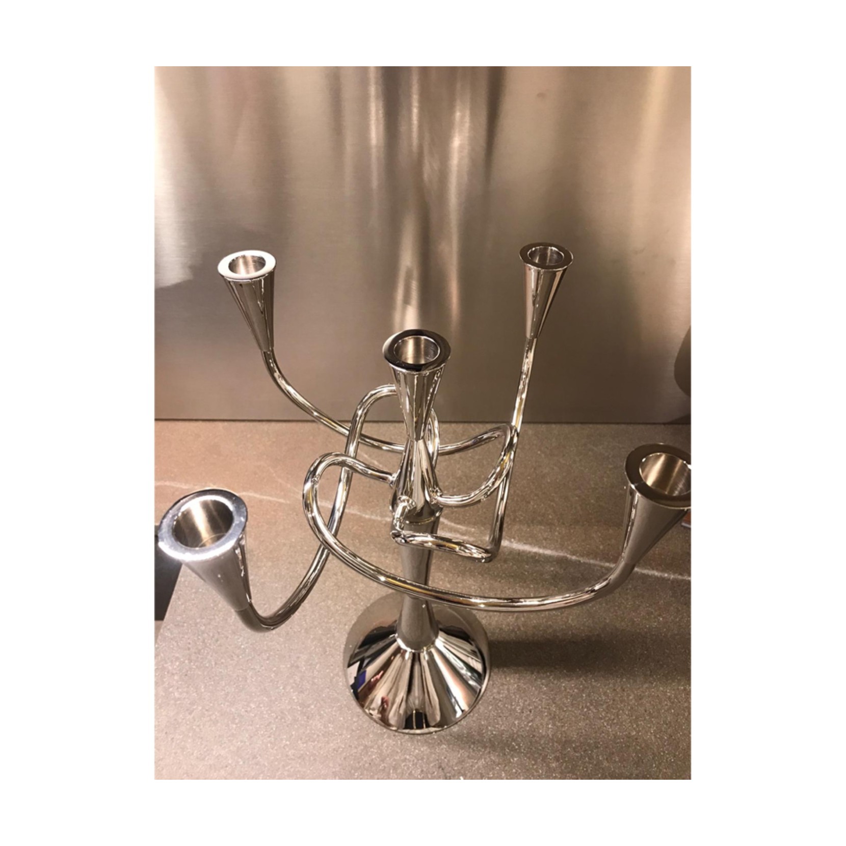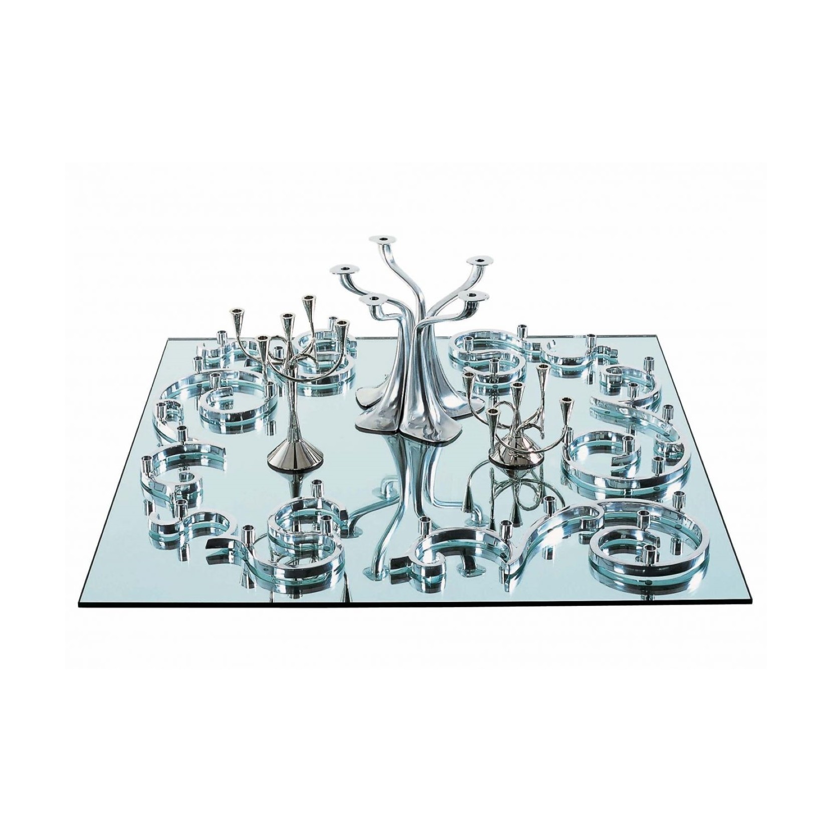 Le beau chandelier Matthew Boulton de Giuseppe Chigiotti est réalisé en laiton avec une finition en nickel poli. Giuseppe Chigiotti, historien et architecte du design, sest inspiré de luvre du grand orfèvre, langlais Matthew Boulton, qui, au XVIIe siècle, avait commencé à industrialiser la production dobjets en argent.