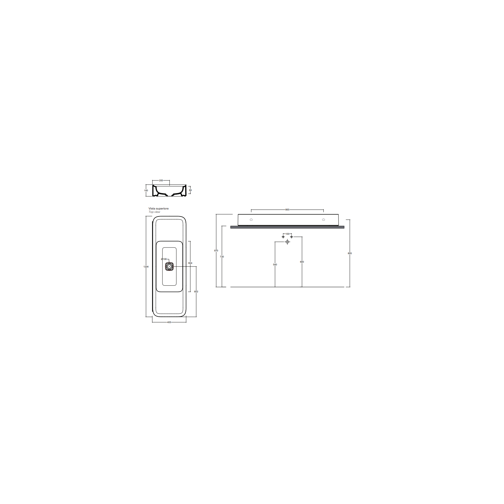 VALDAMA Cameo - Lavabo en céramique à poser et suspendu 120 X 40 h14. Évier avec 3 trous