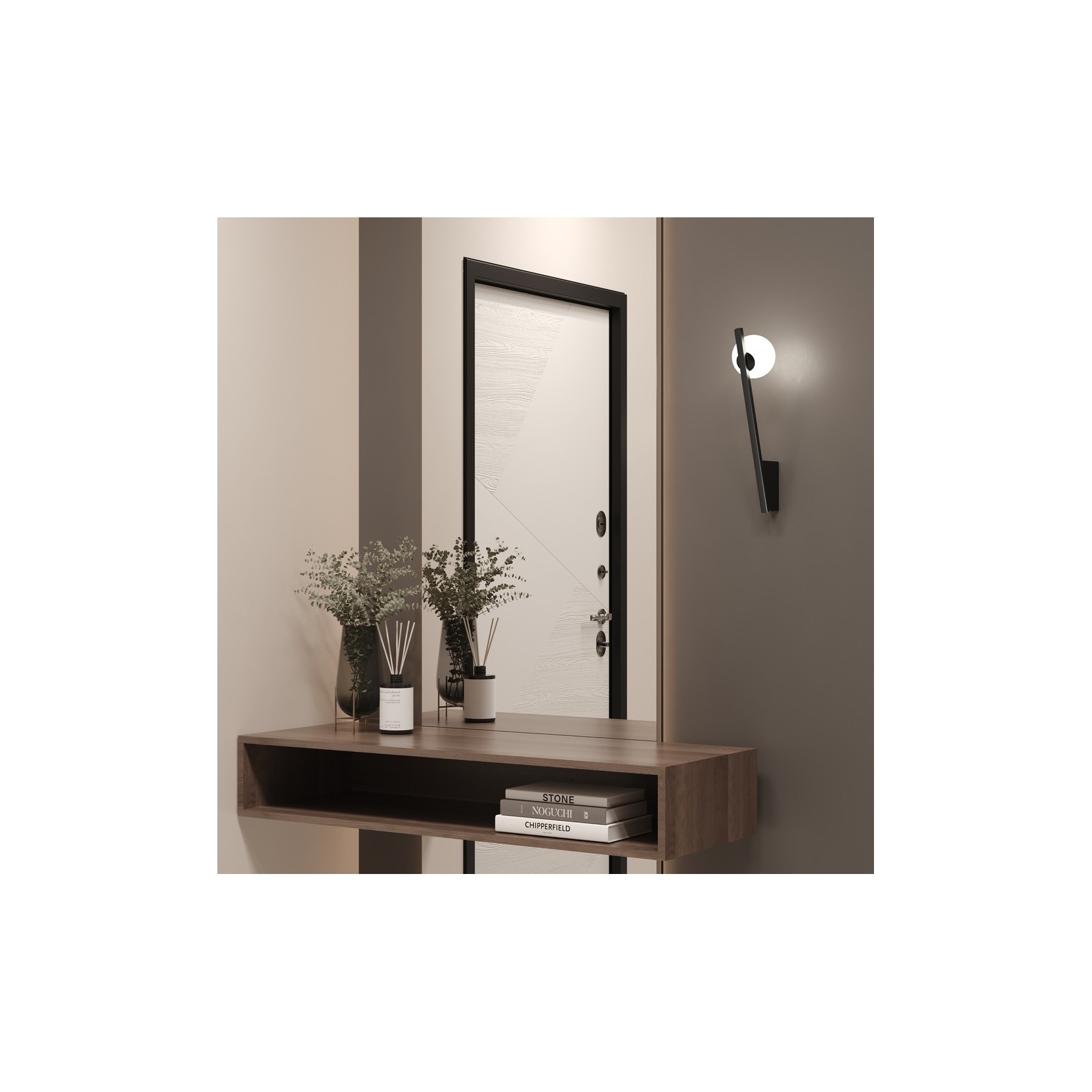 L'applique Kazimir se distingue par son esthétique audacieuse et contemporaine. Cette juxtaposition asymétrique suggère un sentiment d'équilibre précaire et dynamique, transformant la lampe en une petite installation d'art moderne sur le mur.