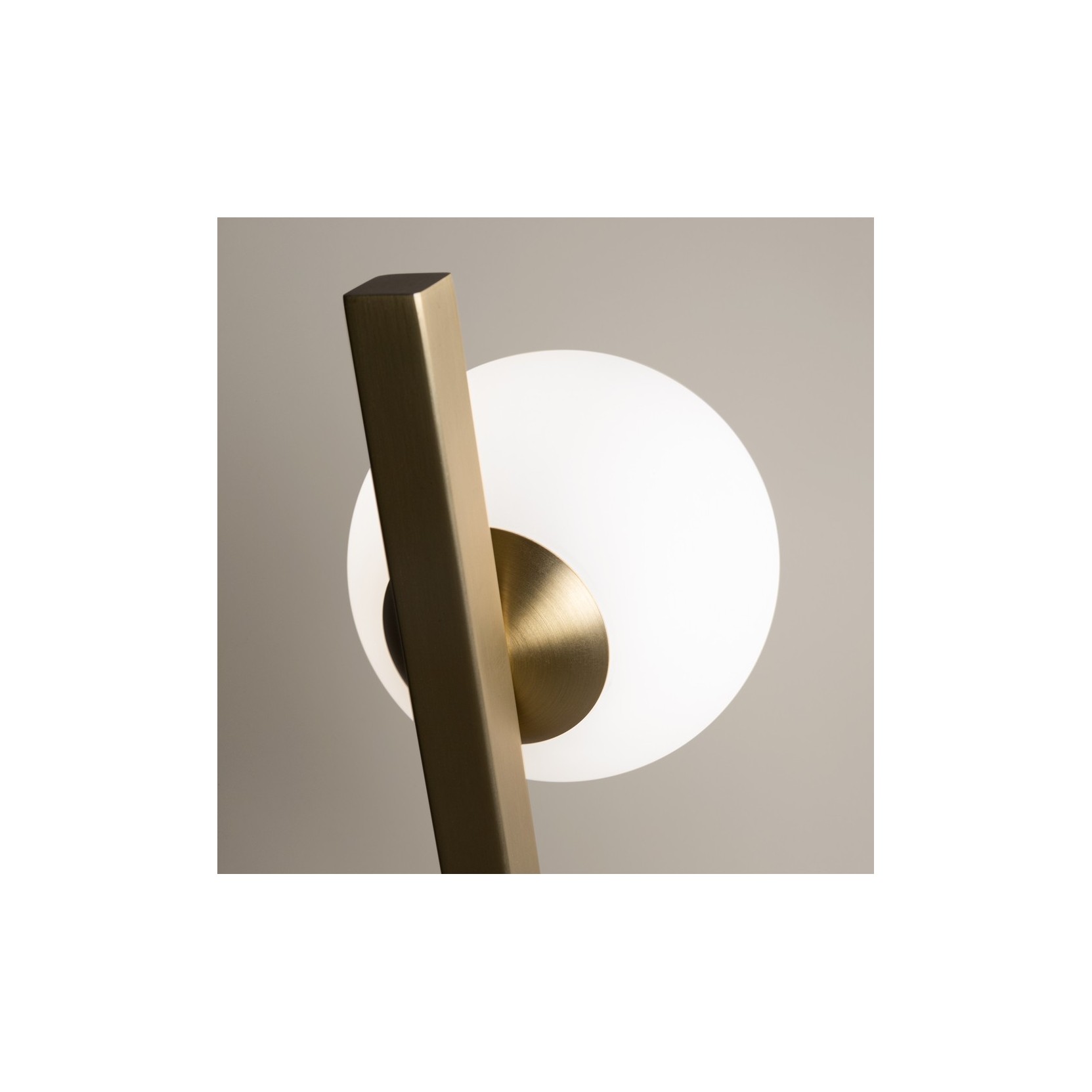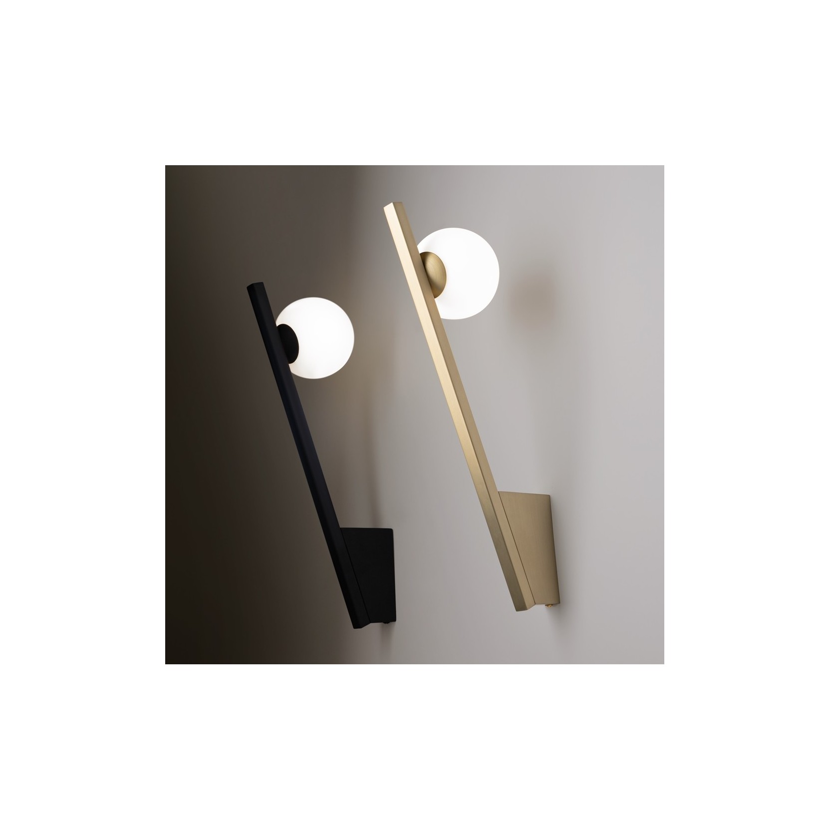 L'applique Kazimir se distingue par son esthétique audacieuse et contemporaine. Cette juxtaposition asymétrique suggère un sentiment d'équilibre précaire et dynamique, transformant la lampe en une petite installation d'art moderne sur le mur.