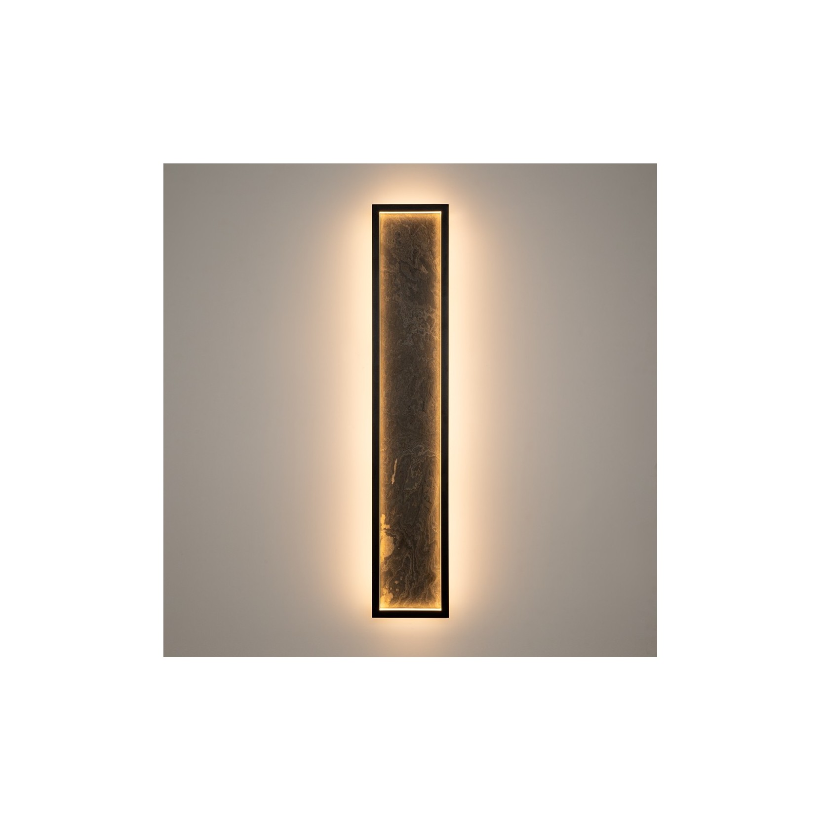 Sublimez l'atmosphère de vos intérieurs avec l'applique Orign, une pièce de décoration qui redéfinit le concept d'éclairage décoratif. Ce luminaire n'est pas seulement un point lumineux, mais une véritable installation artistique verticale qui fusionne la rigueur du métal con la beauté ancestrale de la pierre.