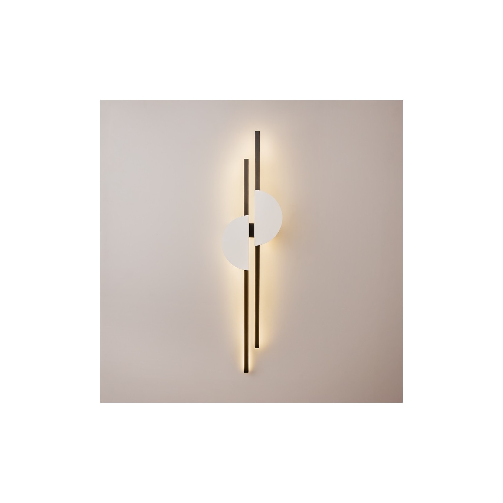 L'applique Skyline est un luminaire au design abstrait et sculptural, conçu pour habiller les murs à travers un jeu de formes pures et de reflets lumineux. Grâce à son esthétique minimale et au fort contraste entre le noir et le blanc, cette lampe transforme chaque surface verticale en une installation artistique moderne.