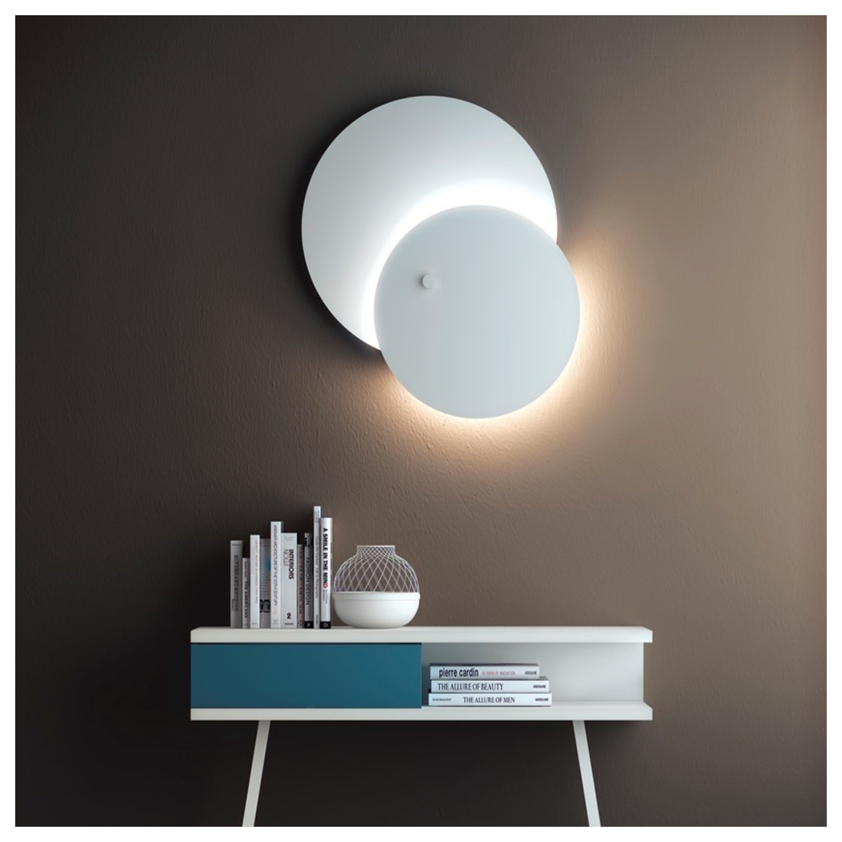 La collection Eclipsi a été dessinée par Josep Lluis Xuclà pour Estiluz. Un jeu de lumières et dombres à travers la superposition de deux disques. Lutilisateur crée lillusion dune éclipse en tournant le disque en haut pour révéler une lumière douce et indirecte. LApplique est en métal et fournit la lumière indirecte. Plaque avant sur goujon.