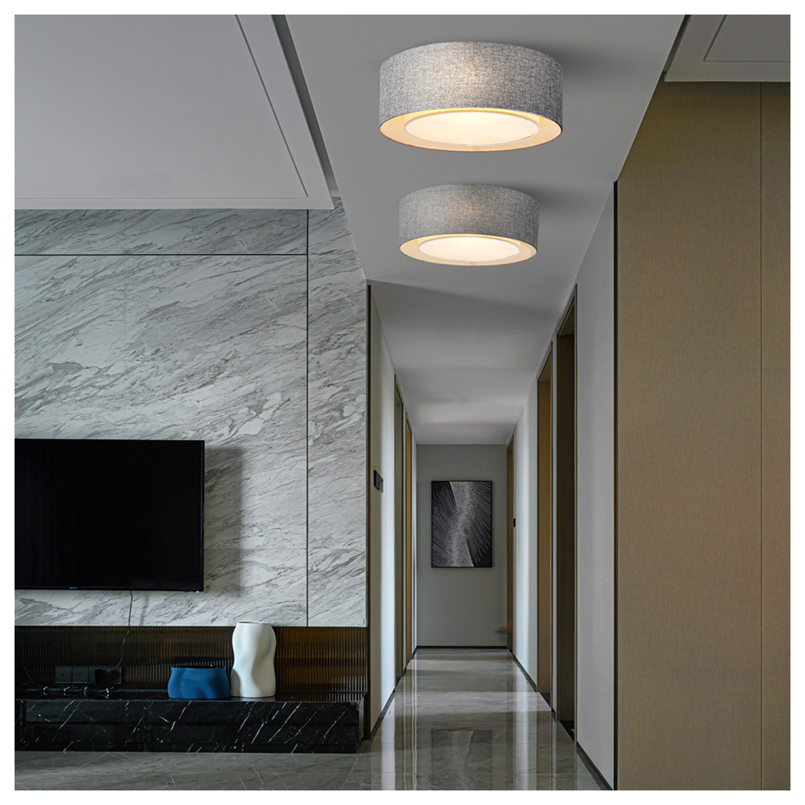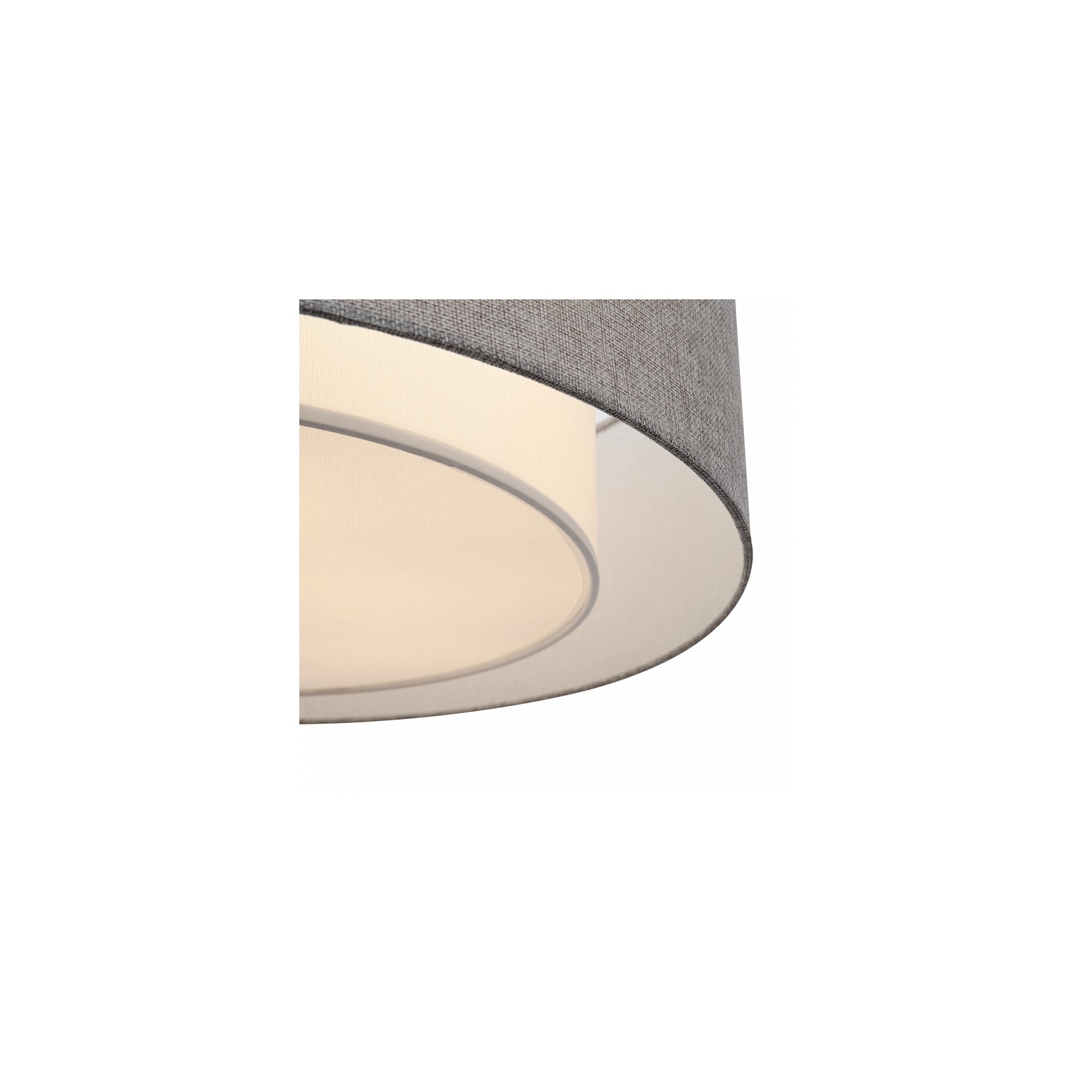 Le plafonnier BERGAMO se compose dune structure en métal avec diffuseur en tissu gris. La lampe aux lignes simples sadapte à la fois aux environnements modernes et contemporains.