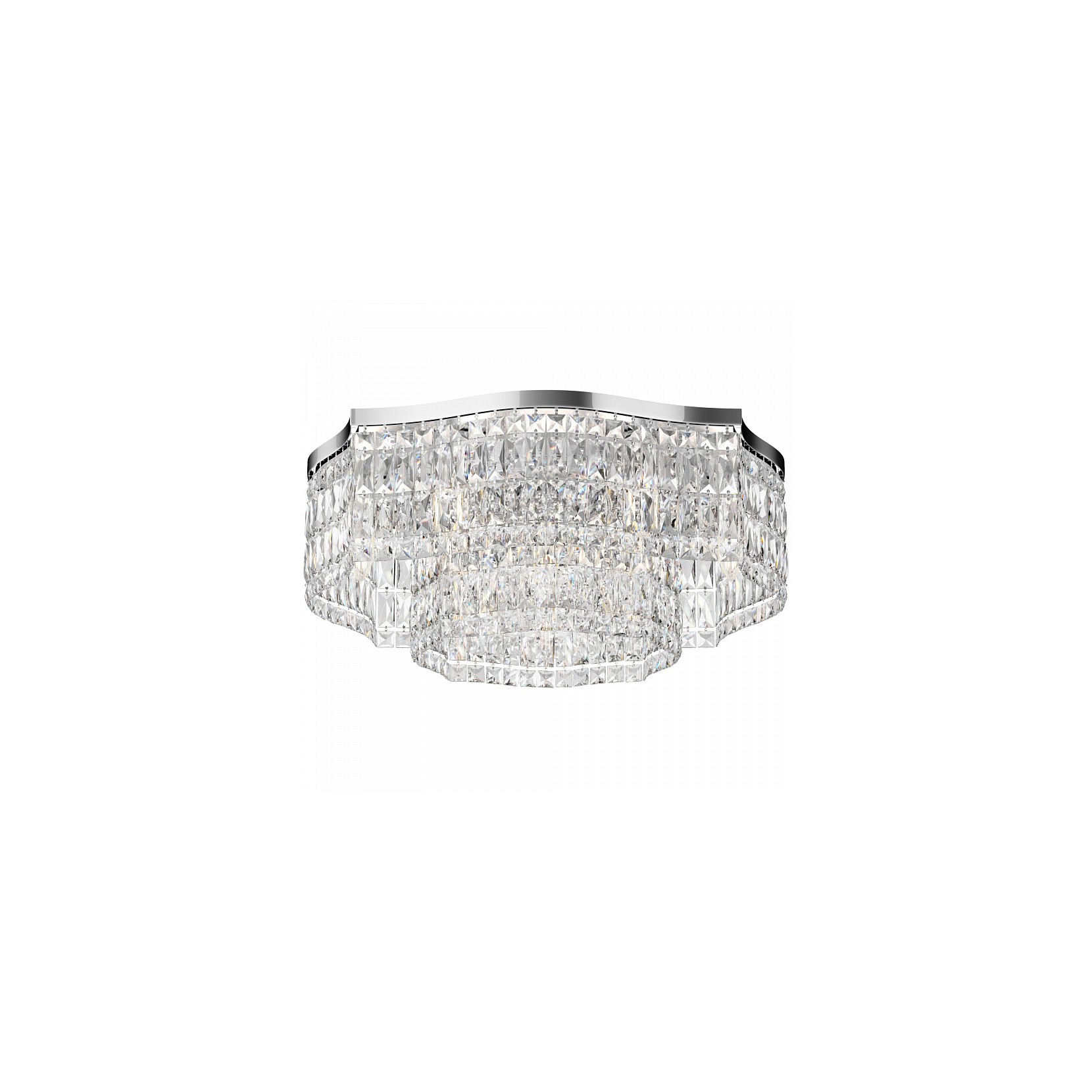 Le plafonnier DUNE voit la combinaison du métal chromé et du verre transparent modulé en forme de carrés. Dune se compose de 10 ampoules, ce qui rend lenvironnement charmant et accueillant.