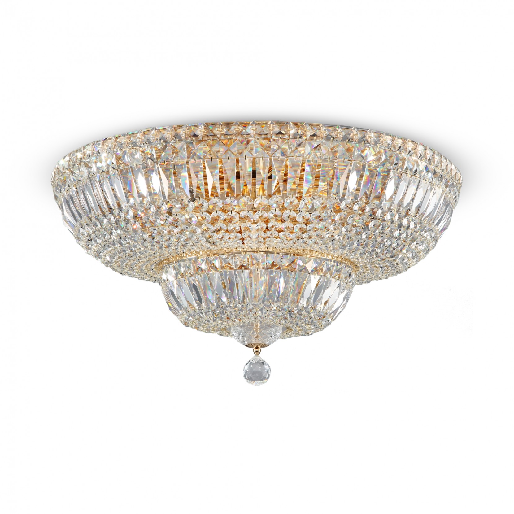 La lampe murale BASFOR voit la combinaison de deux matériaux : le métal et le verre. La structure en métal reprend le style néoclassique dans la finition or est enrichie par les différents motifs géométriques pendentifs en cristal.