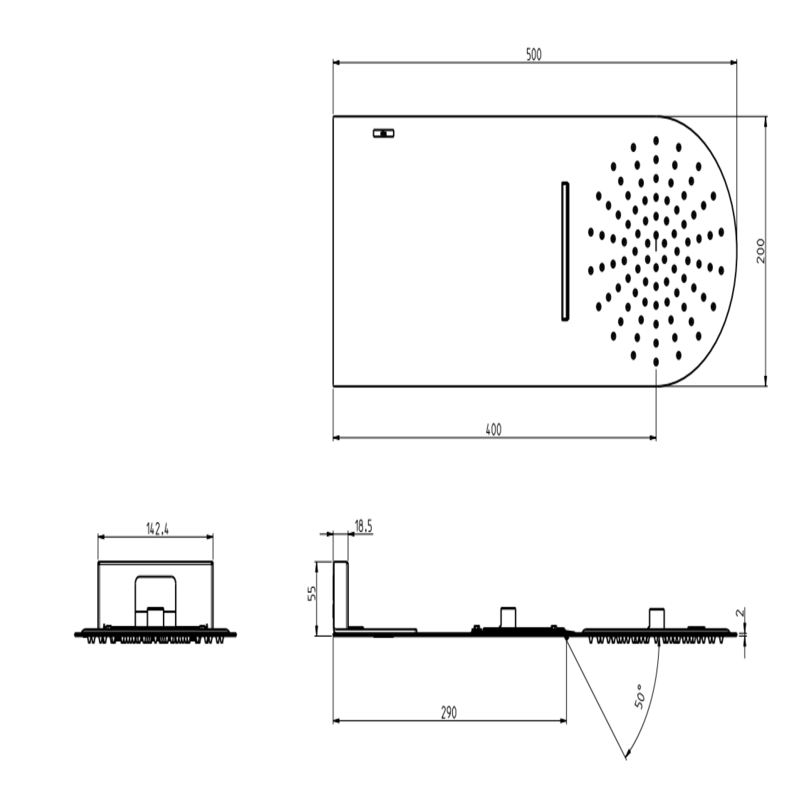 F.lli Frattini Docce Inox, Pomme de douche stondato pluie et cascade 50x20 cm