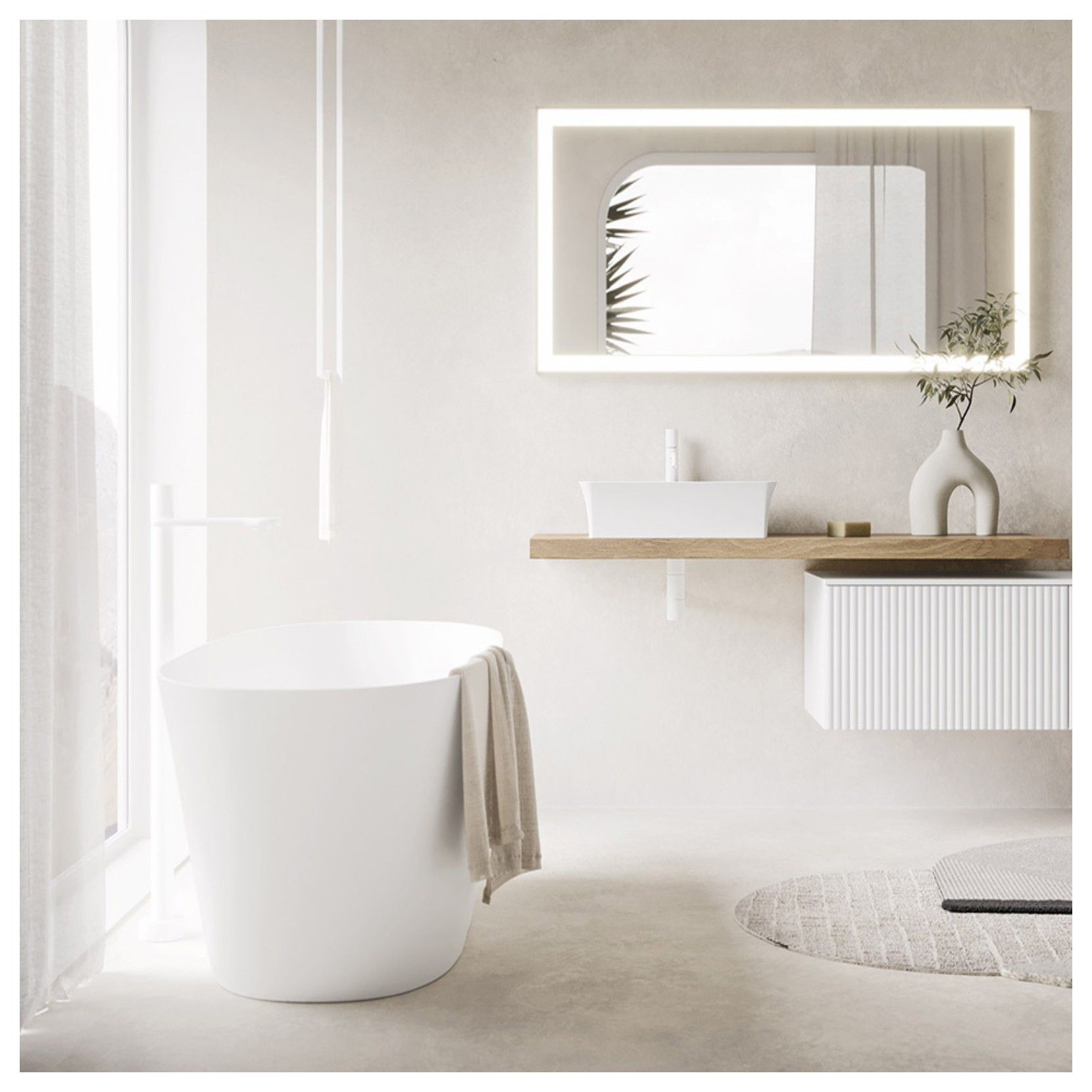 Baignoire autoportante en Tekno blanc mat L160,3xP70xH57,5cm avec décharge cbianco stop&go et kit siphon (sans débordement).