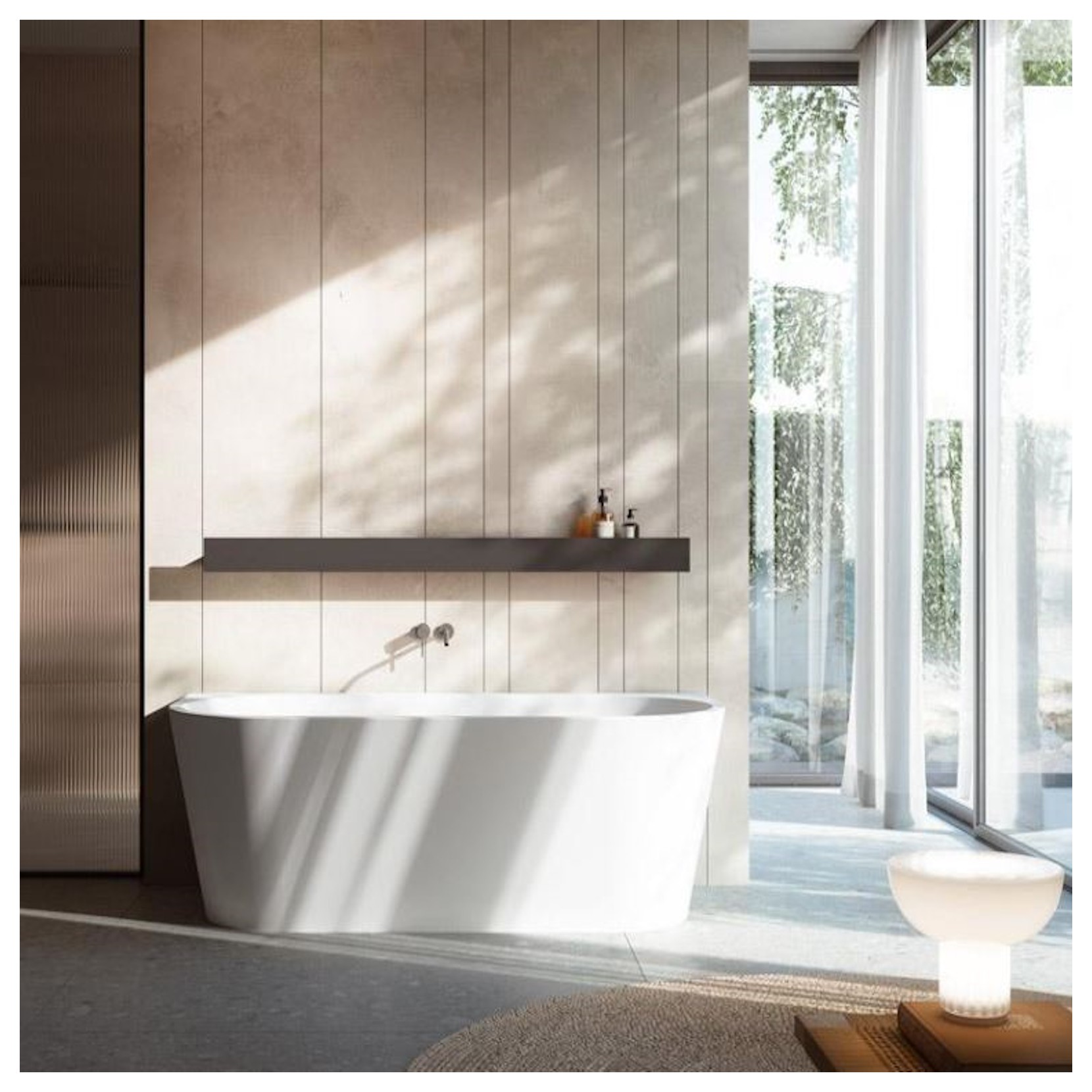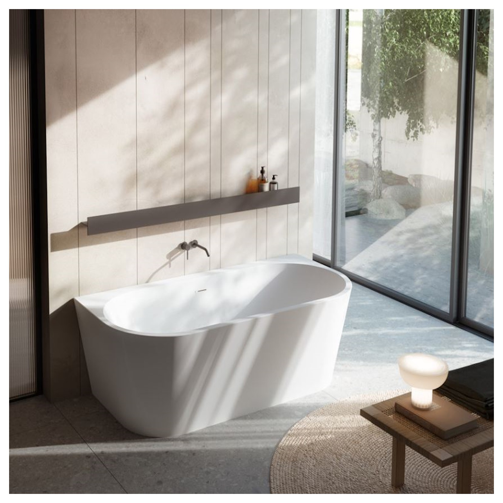 Dimensions compactes et élégance pour Meilin, une proposition de baignoire design pour installation murale.