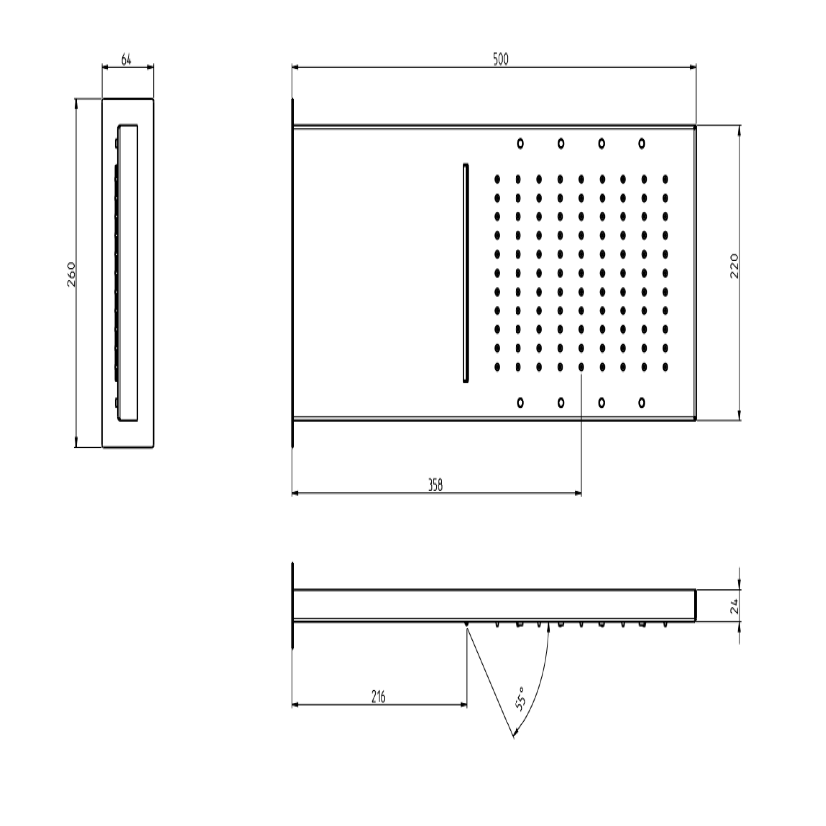 F.lli Frattini Docce Inox, Pomme de douche pluie et cascade 50x22 cm