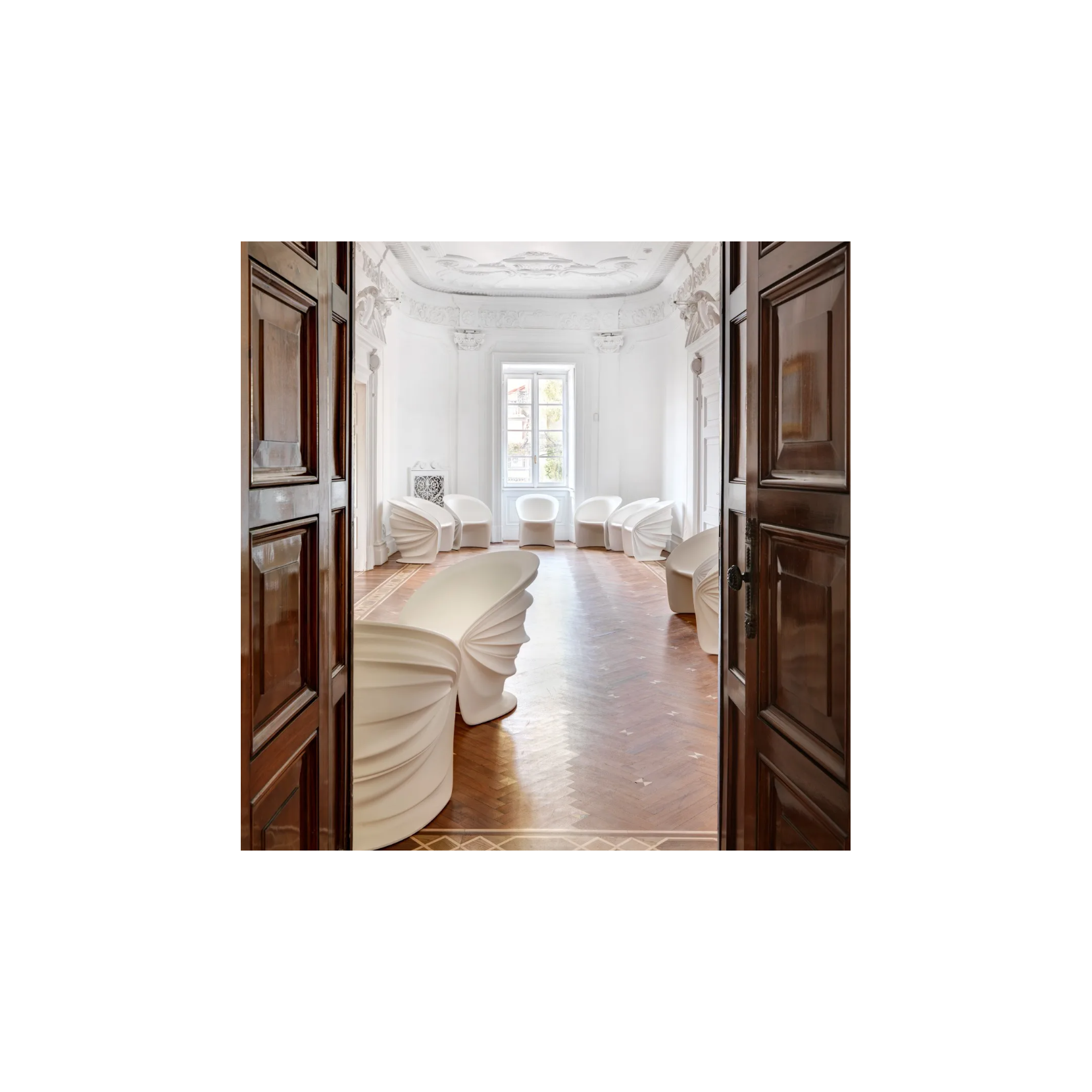 Modesty Veiled est une assise élégante et vaniteuse en monobloc de polyéthylène conçue par le célèbre designer Italo Rota.