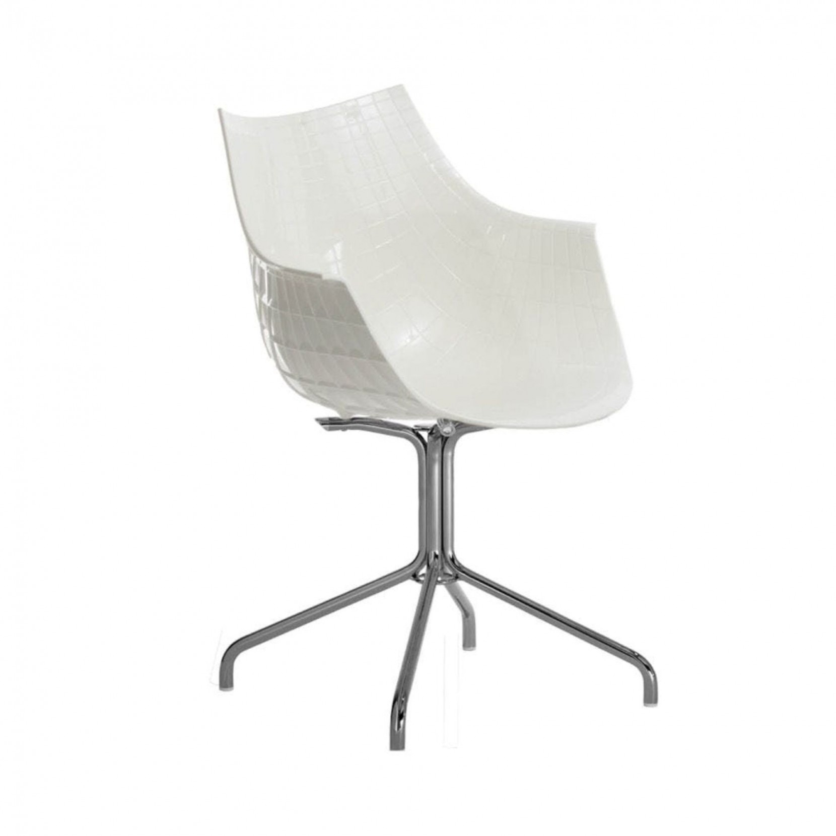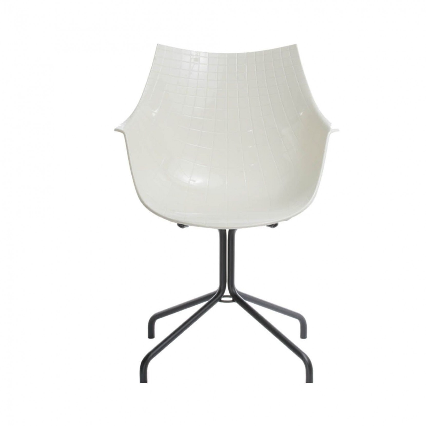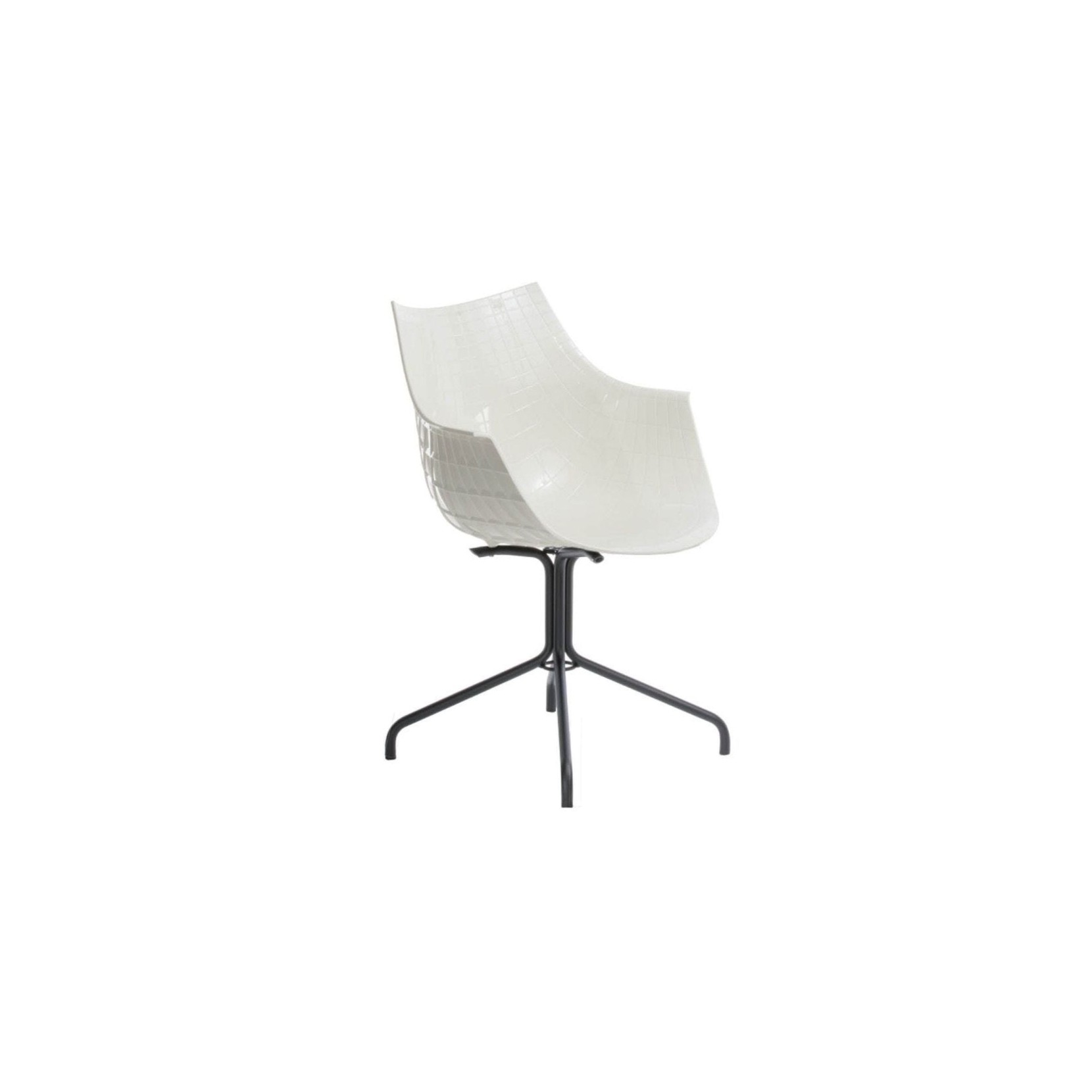 Meridiana est lassise emblématique dessinée par Christophe Pillet en 2004. Cette chaise aux lignes diamantées se compose dune coque en polycarbonate blanc et de pieds en acier chromé ou peint en noir. Sa forme unique le rend unique et convient à tous les environnements, de la salle à manger au bureau.