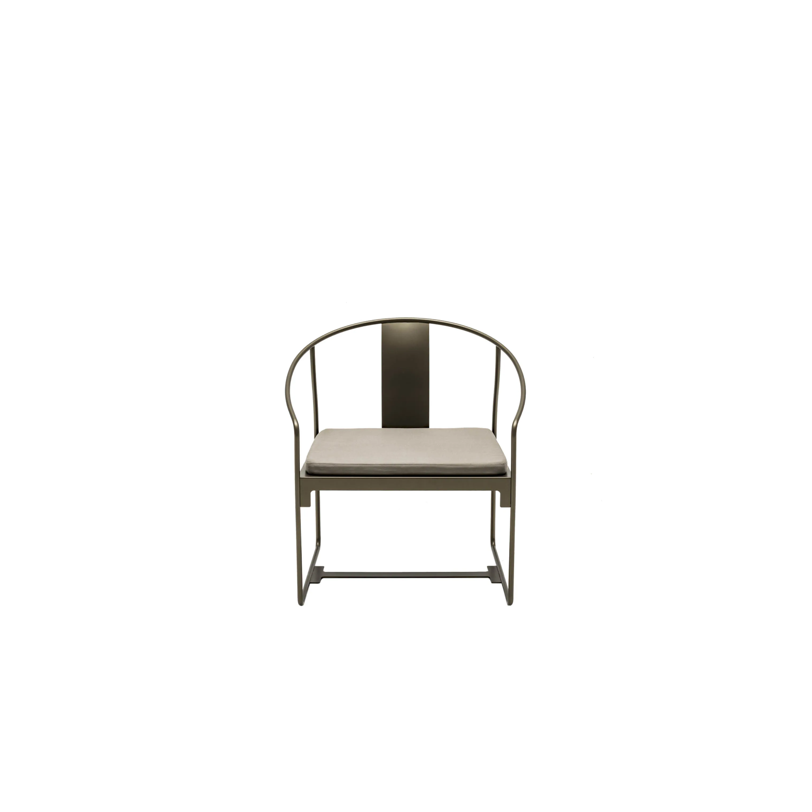 Du nom de la célèbre famille Ming qui a eu une influence considérable dans la culture chinoise et le commerce oriental : Mingx rappelle les lignes de la bibliothèque zigzag et est une chaise avec des formes tubulaires en tôle dacier imprimé peint avec un traitement protecteur de cataphorèse enduit de poudre de polyester dans les couleurs bronze et noir; pieds en abs et assise avec revêtement en tissu pour extérieur dans la même couleur que la structure. La série est enrichie par des sièges, des tables et des tabourets avec et sans dossier.