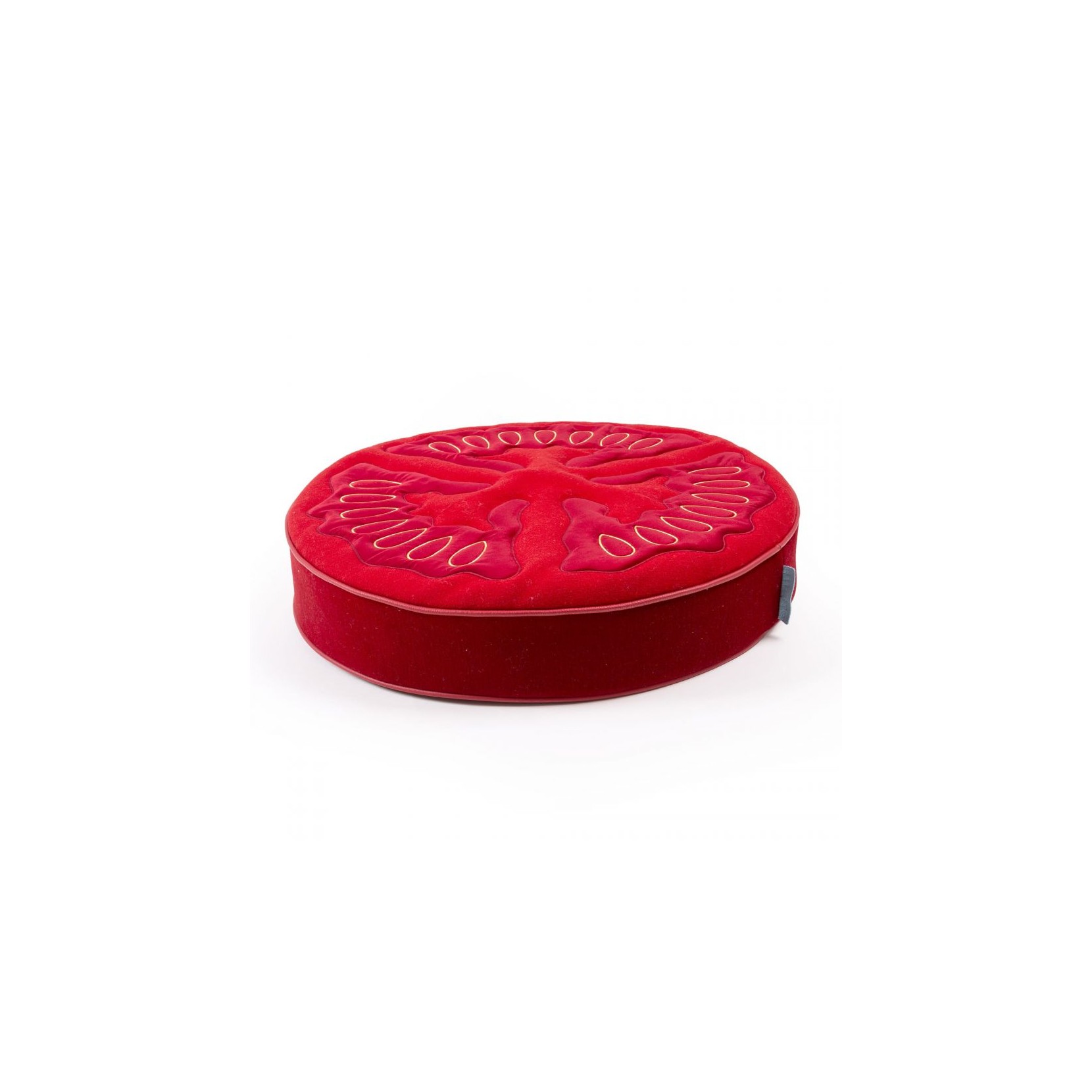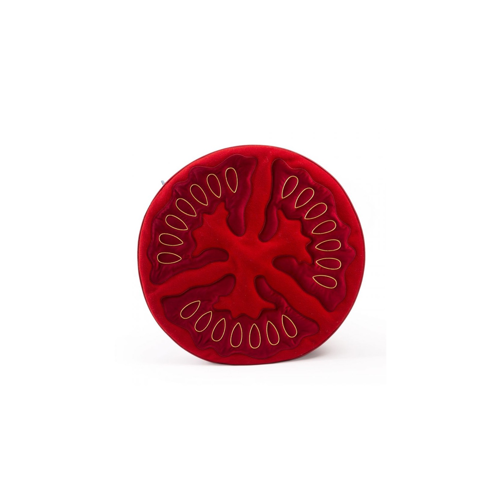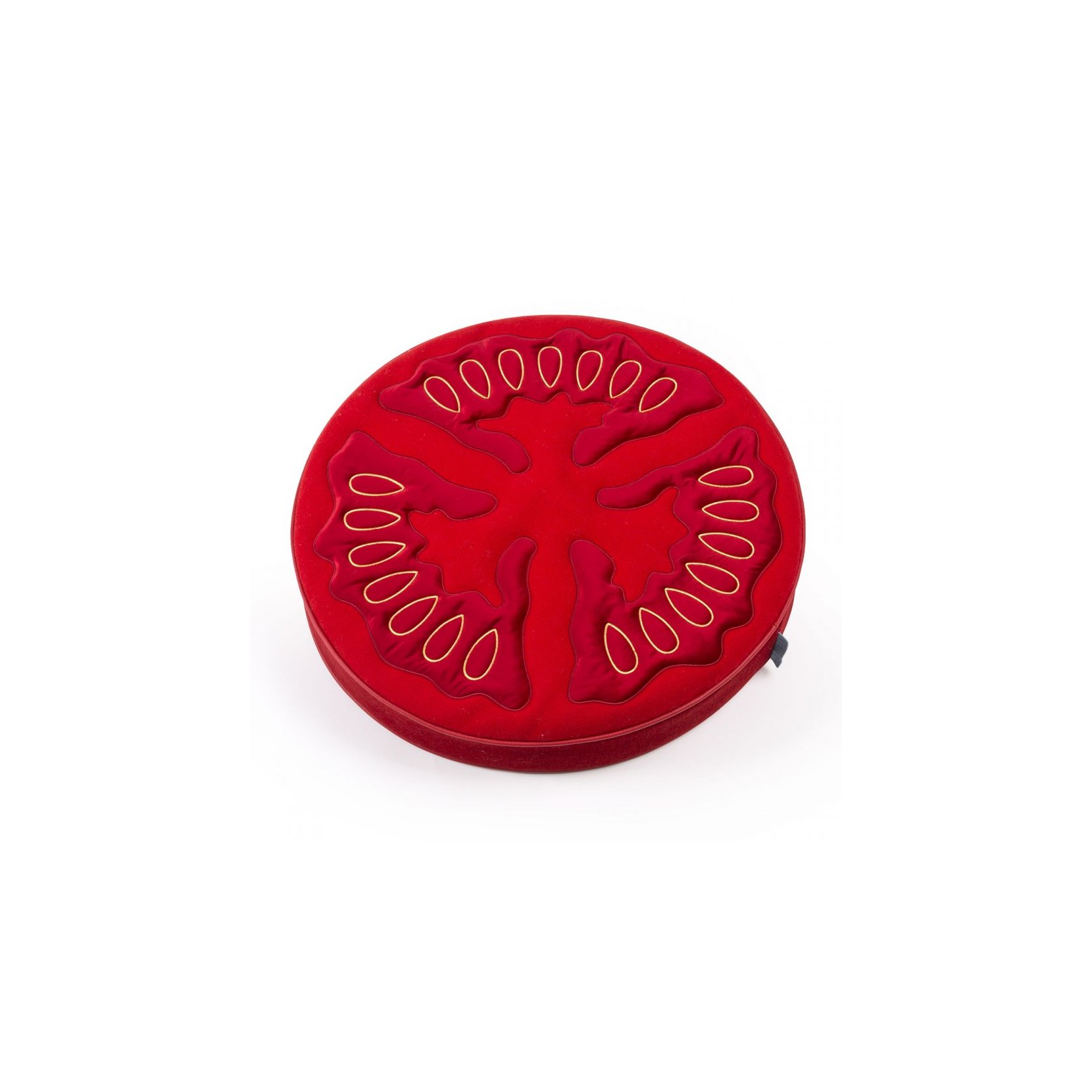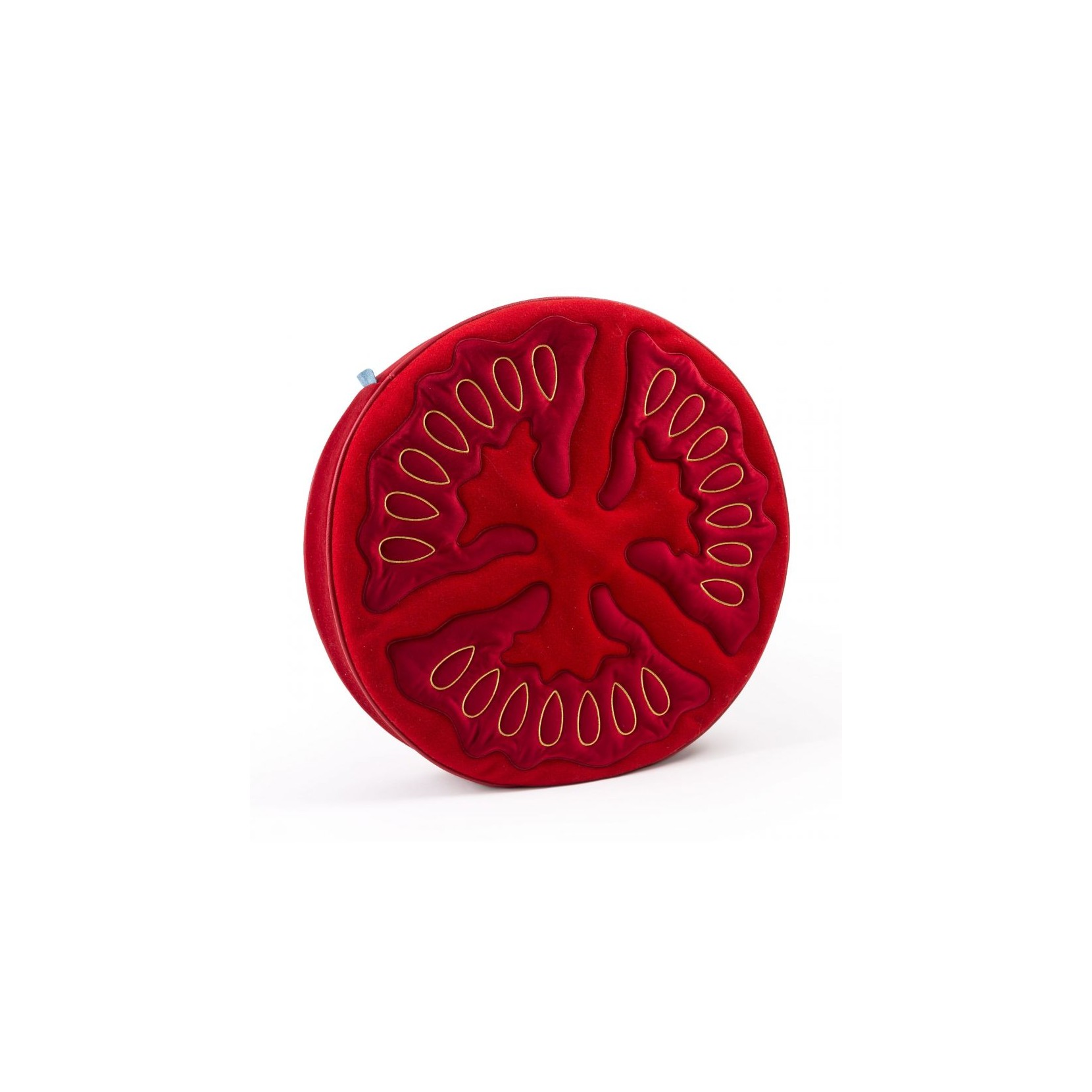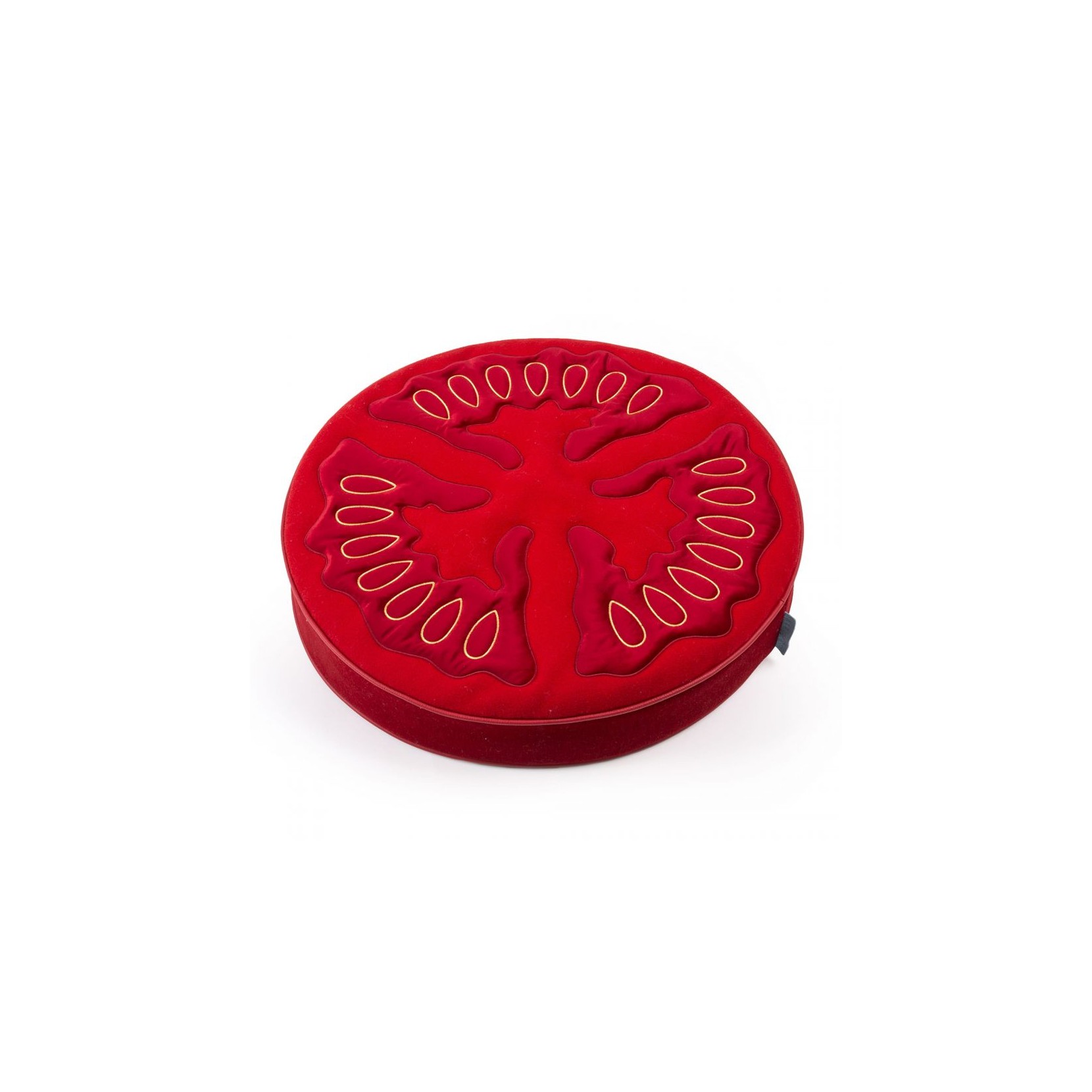 Coussin en forme de tomate qui sont des éléments de décoration emblématiques de la culture pop américaine.