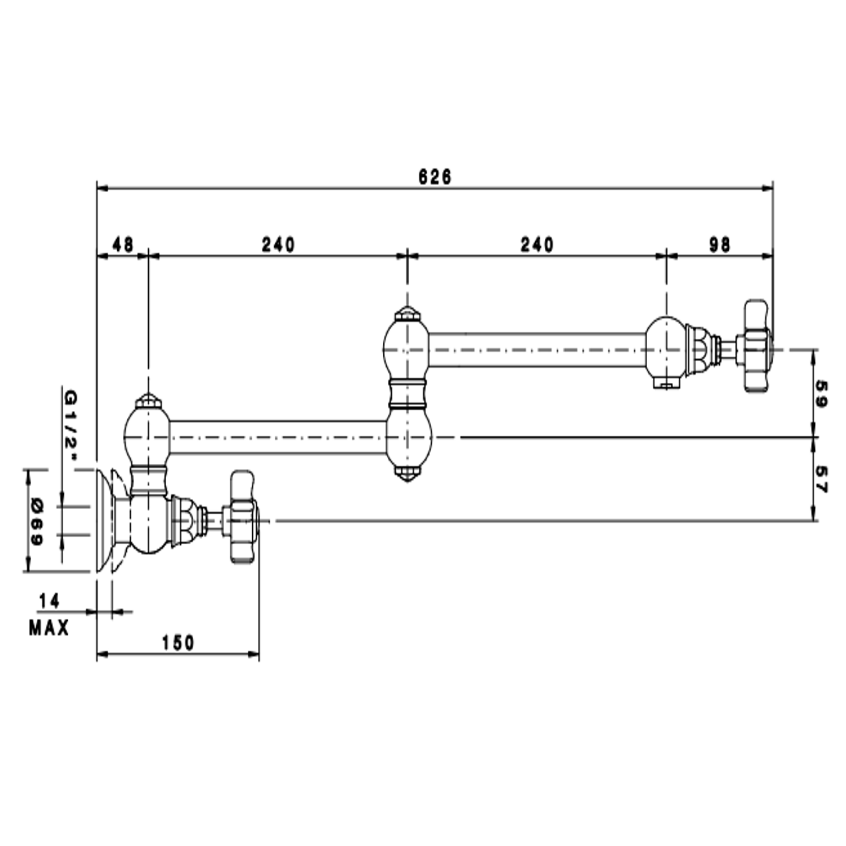 Officina Nicolazzi Dames Anglaises, Robinet de cuisine articulé avec arrêt