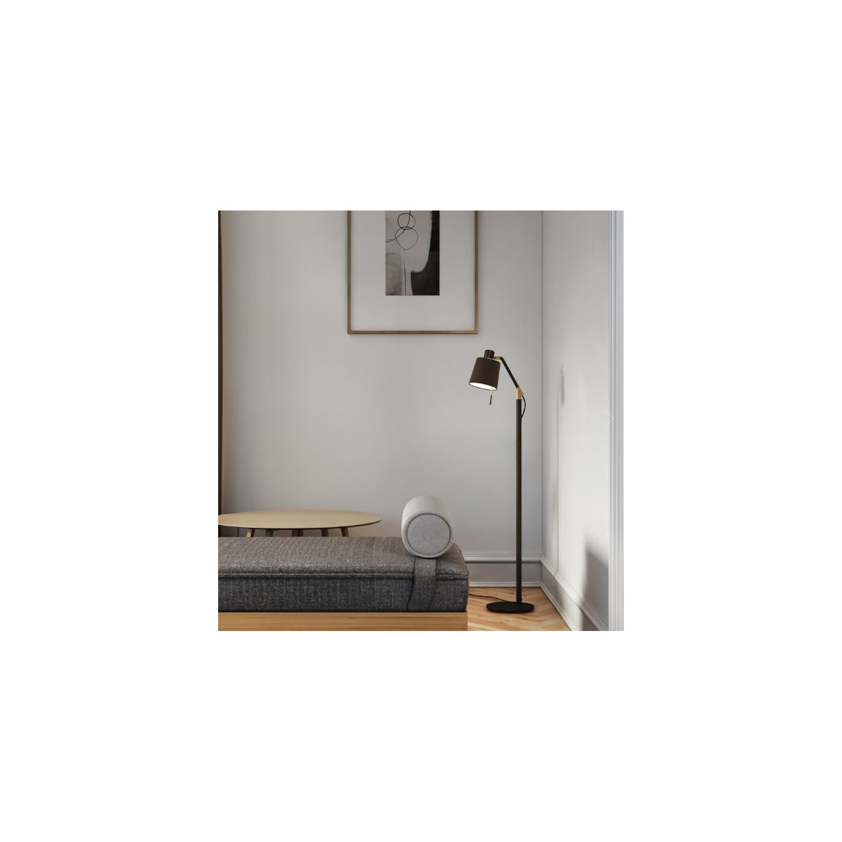 Edward Floor est un lampadaire moderne réglable, caractérisé par une finition noire mate, parfait pour les zones de détente des hôtels,