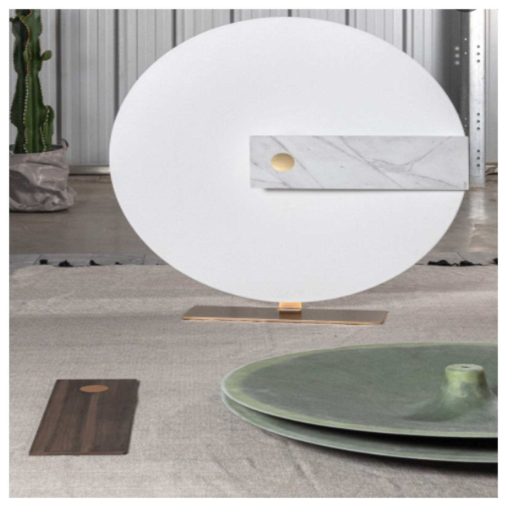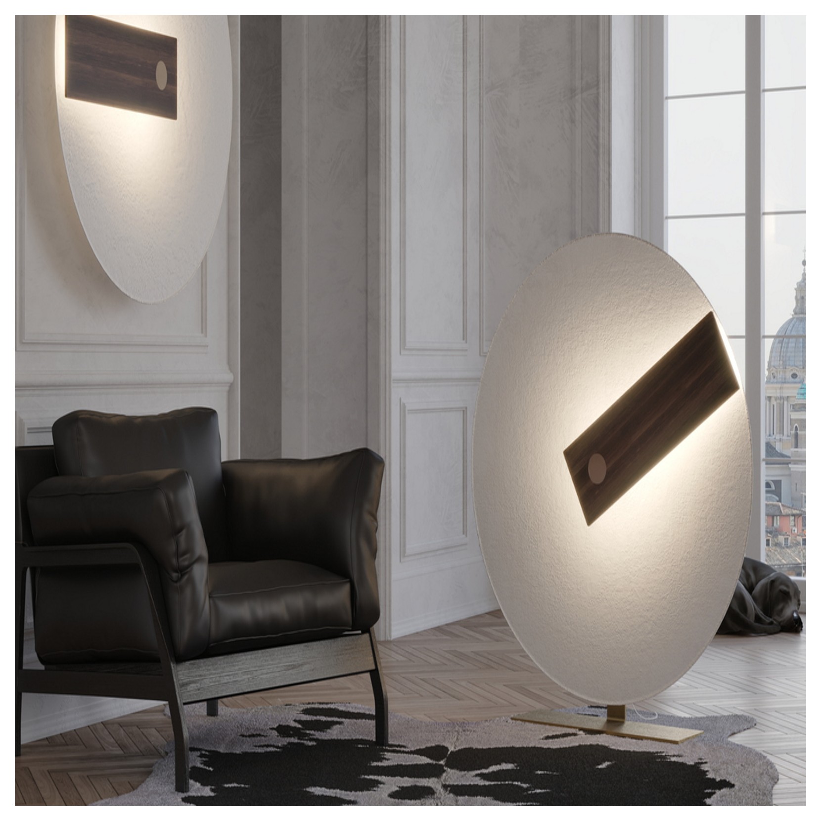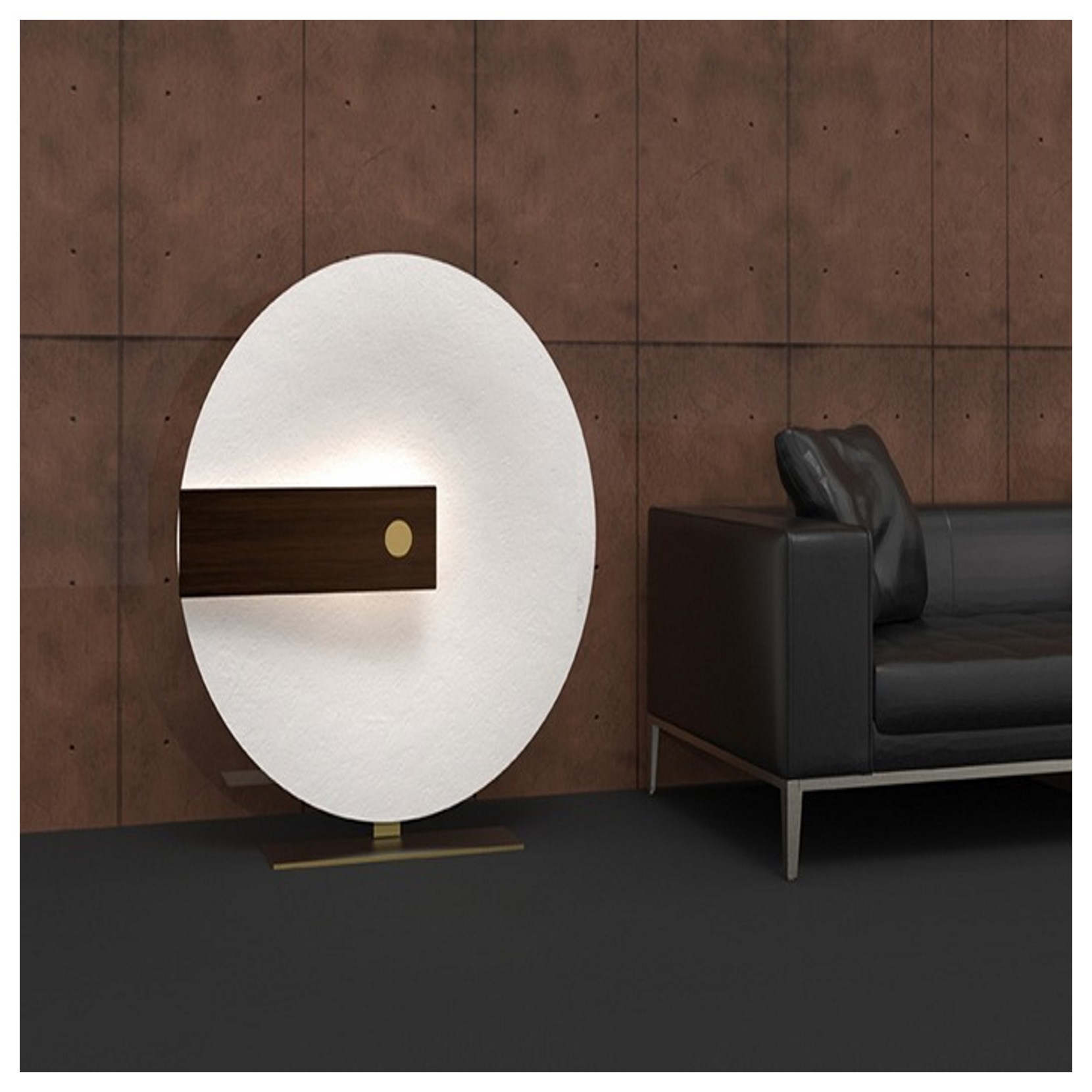 Hind Rabii propose la lampe Meridiana, abat-jour en fibre de verre et détails en chêne wengé ou marbre blanc. Meridiana inverse la signification même du mot, ici la lumière nest pas le médium mais lidentité princière. Le lampadaire émet une lumière délicate mais décisive.