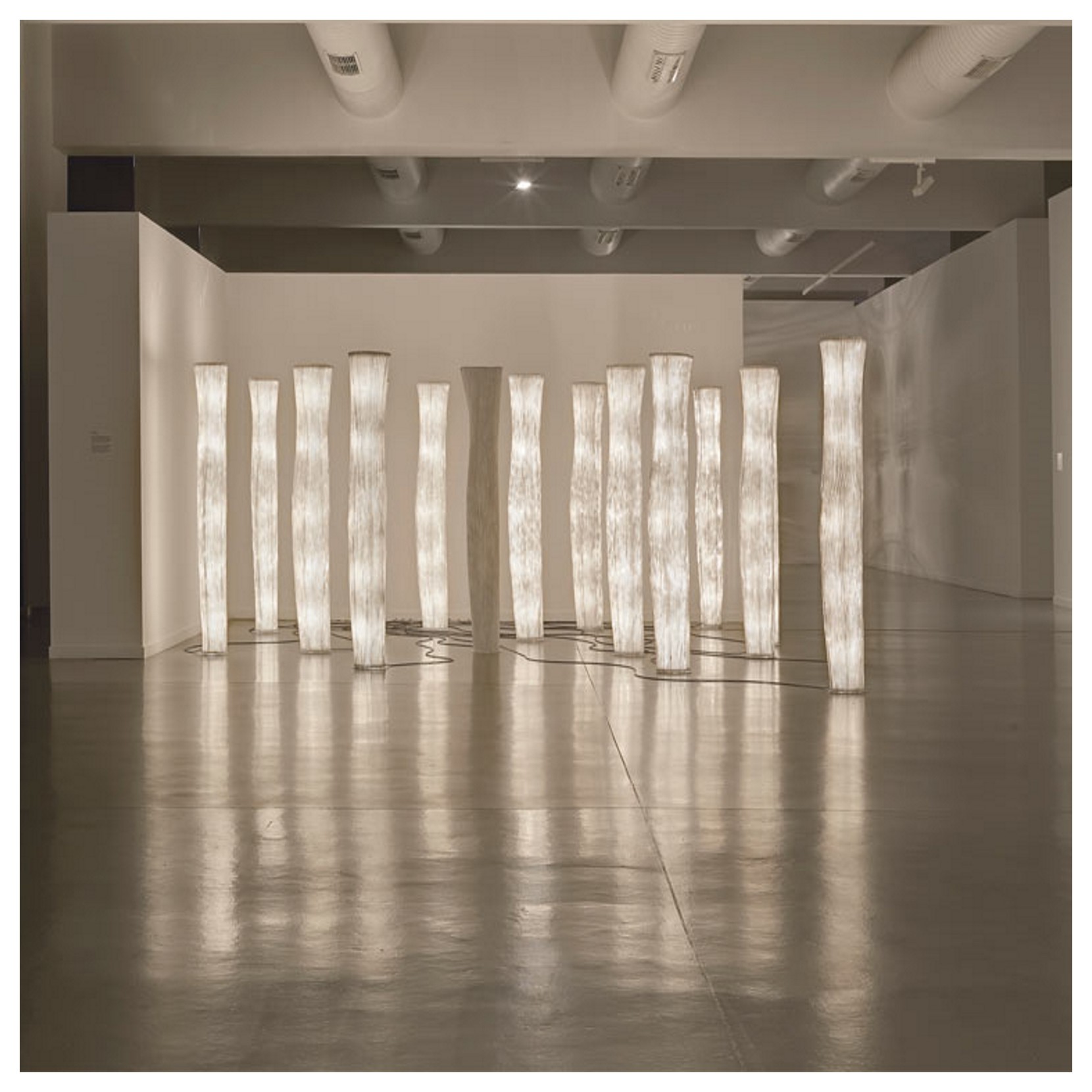 Gea, lauréate du Good Design Award 2007, tire son nom de la déesse mère terre. Cest une lampe en acier inoxydable peint avec des formes sinueuses; la lumière douce et accueillante est distribuée dans toute la structure.