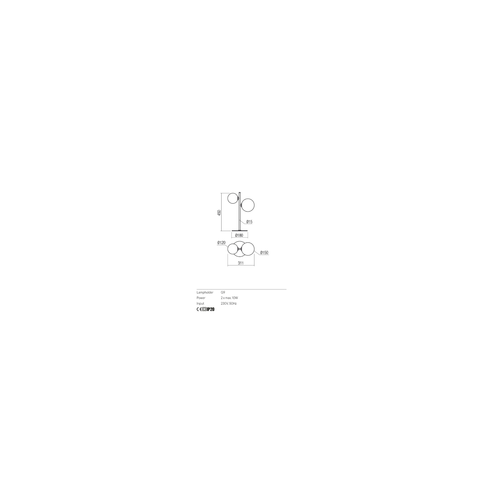 Le lamapda se présente avec une structure en métal finition laiton antique mat, diffuseur en verre pyrex avec finition dégradée en miroir or et café.
