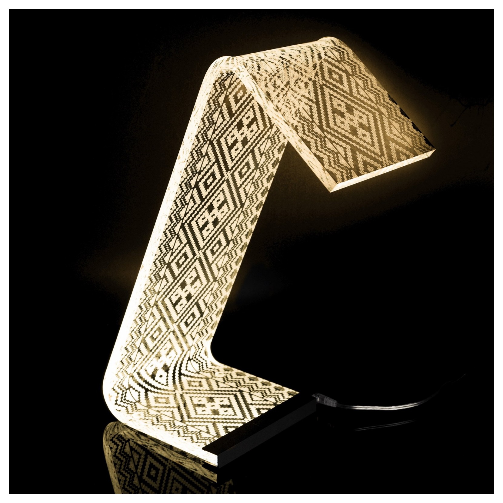 La lampe de table C-LED reflète lessence du design moderne et original, car les gravures au laser offrent une touche minimale. La lampe en acrylique, en plus de la gravure et de la découpe laser et pliée à la main, permet à la lampe dêtre durable et stable, ce qui lui permet de sadapter à nimporte quel endroit de la maison.