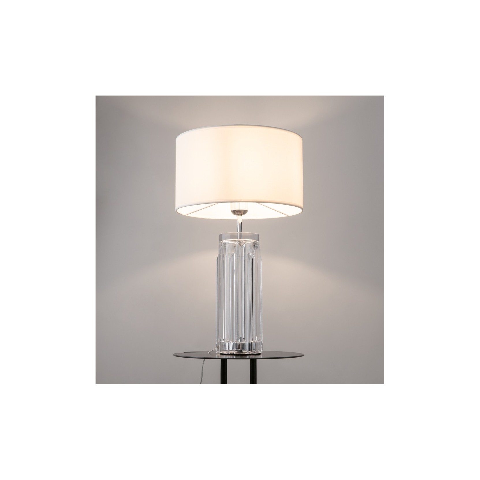 Ajoutez une touche de luxe discret à vos espaces avec la lampe à poser Muse. Cet accessoire de décoration combine la solidité sculpturale du cristal con la douceur d'un abat-jour en tissu, créant un équilibre parfait tra classicisme et modernité. C'est l'objet idéal pour ceux qui recherchent un éclairage qui soit, en même temps, une œuvre d'art précieuse.