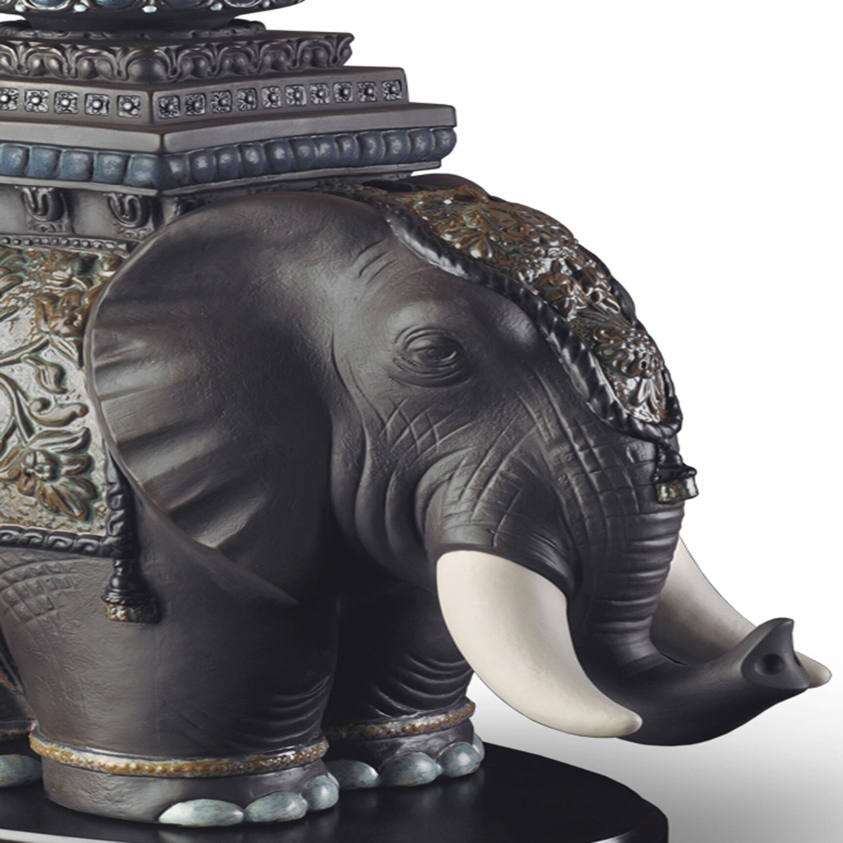 Les lampes de table Lladró allient la fonctionnalité à la beauté et à la perfection sculpturale. Les lignes droites et les proportions parfaites de lécran sharmonisent et, en même temps, contrastent avec les formes figuratives qui servent de base. Imposant et majestueux, cet éléphant ouvre la suite de la cour du Siam. Le seigneur des animaux, le plus grand et le plus puissant de la jungle, est ici montré avec toute sa magnificence, orné de ses meilleurs ornements pour éblouir les sujets du roi. Un complément décoratif parfait pour toutes sortes de pièces.