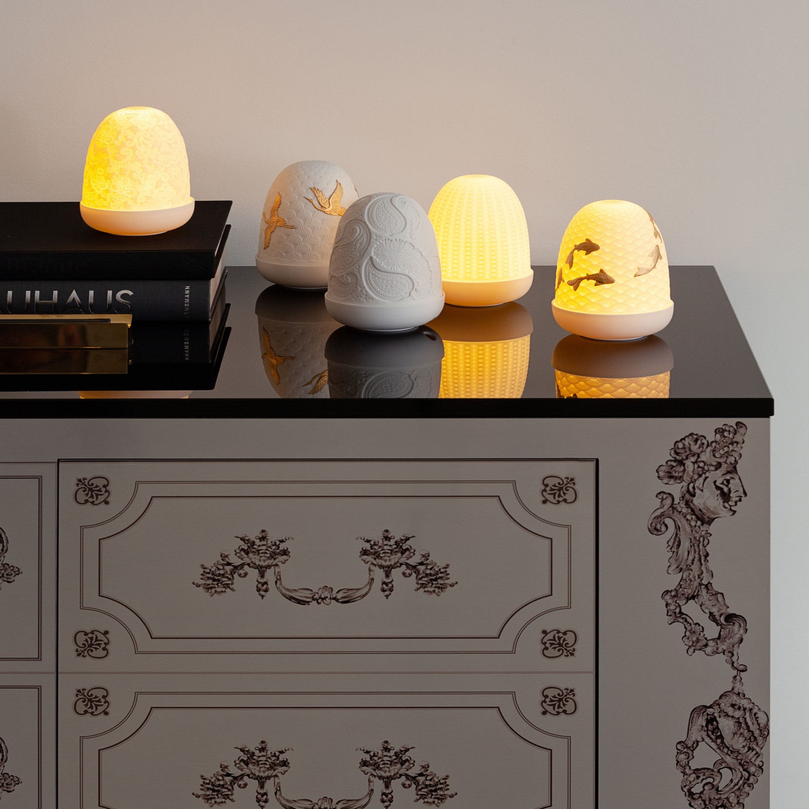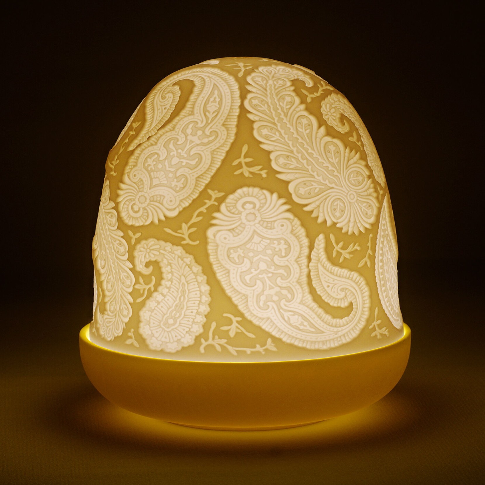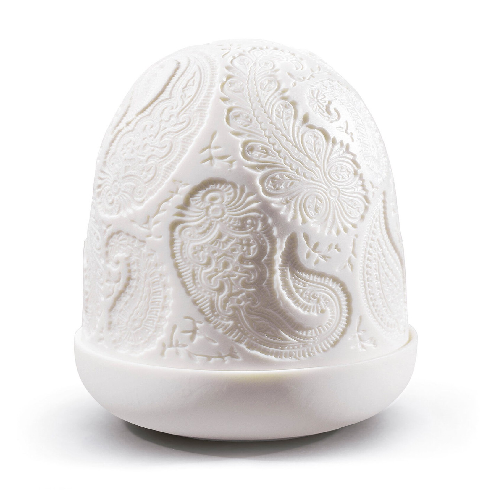 La lampe Paisley Dome est une nouvelle ligne de lampes basées sur la technique des lithphanies, lorsquelle est allumée, la lumière projette les motifs en émettant une luminosité chaleureuse et suggestive qui invite au calme, à la détente avec un effet accueillant. en forme de goutte incurvée. Avec une finition mate en porcelaine et des écrans en dôme impressionnants, réalisés en porcelaine translucide qui nous permet dapprécier le travail laborieux dornementation des motifs gravés à la main sur sa surface.