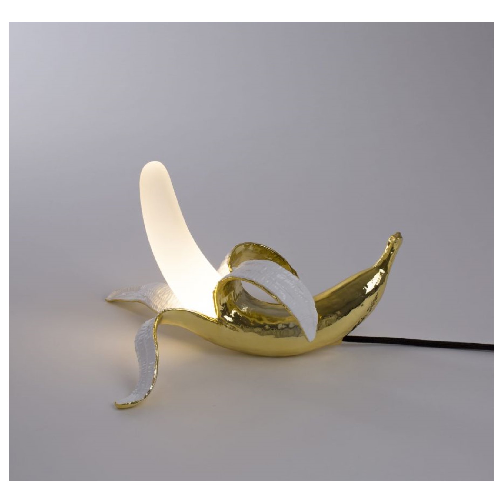 La lampe de table BANANA conçue par Studio Job représente lessence de la créativité extravagante, proposée en deux couleurs différentes bronze brillant et jaune "banane".