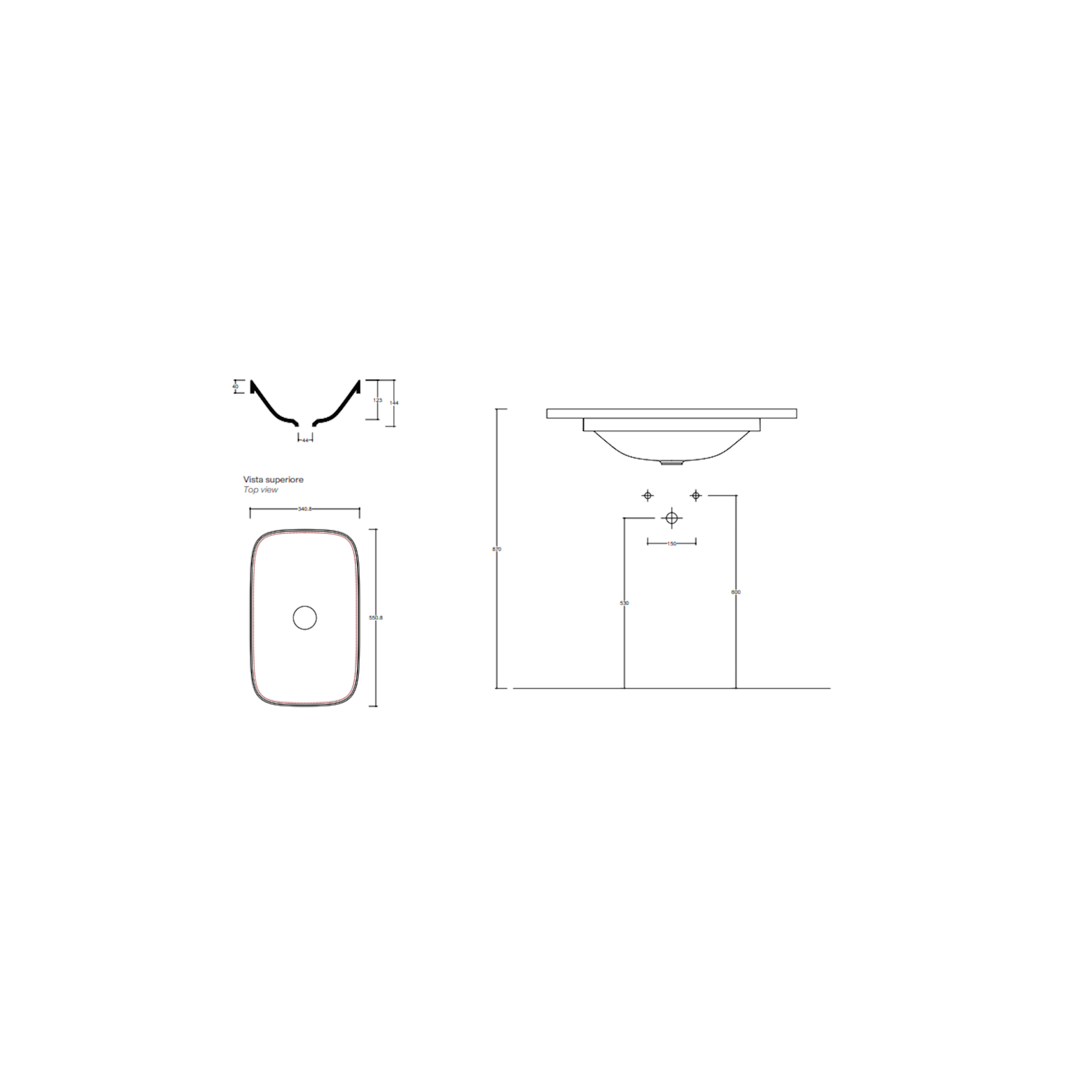 VALDAMA Alveo - Lavabo en céramique sous plan 55 x 34.