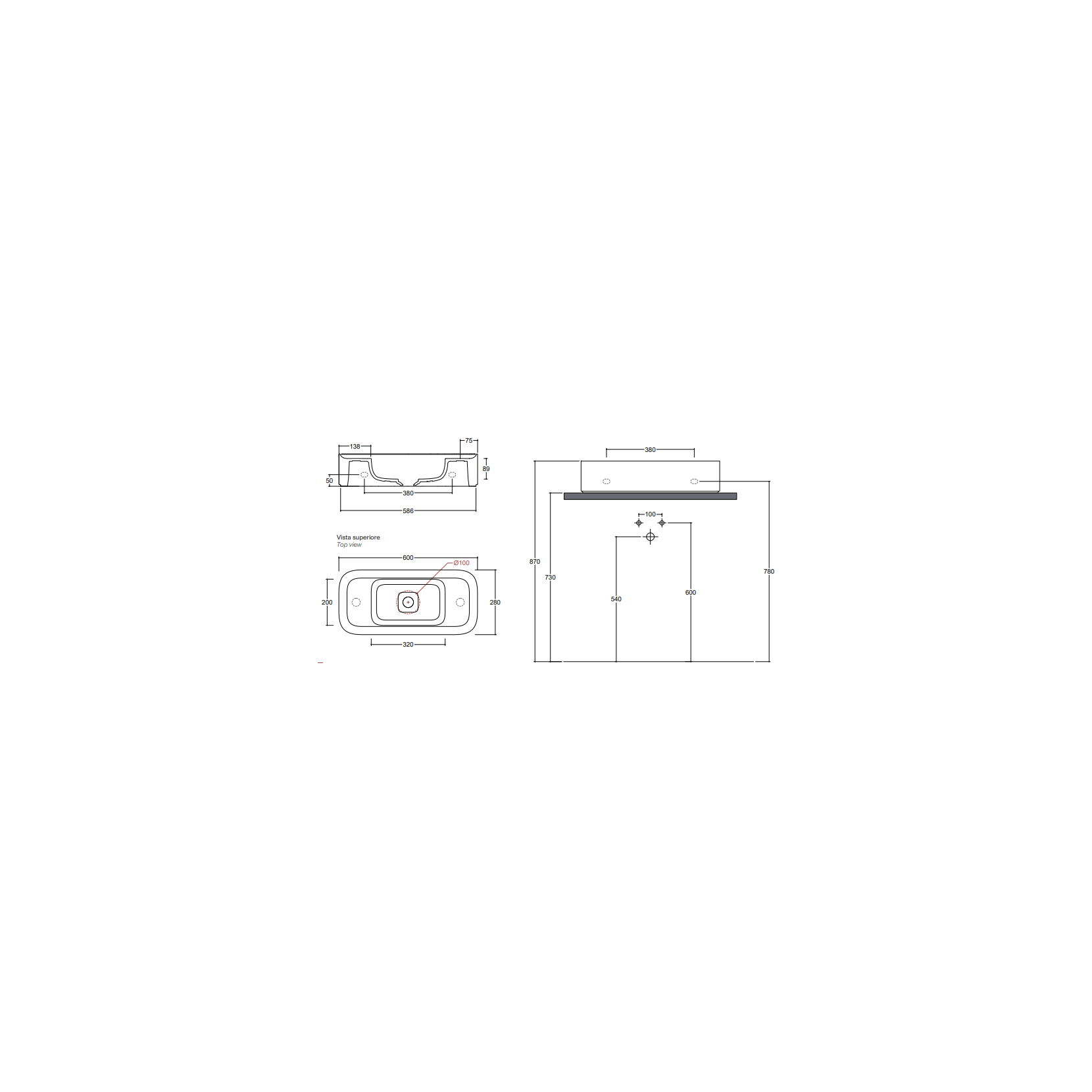 VALDAMA Cameo - Lavabo en céramique à poser et suspendu. 60 x 28 h12.