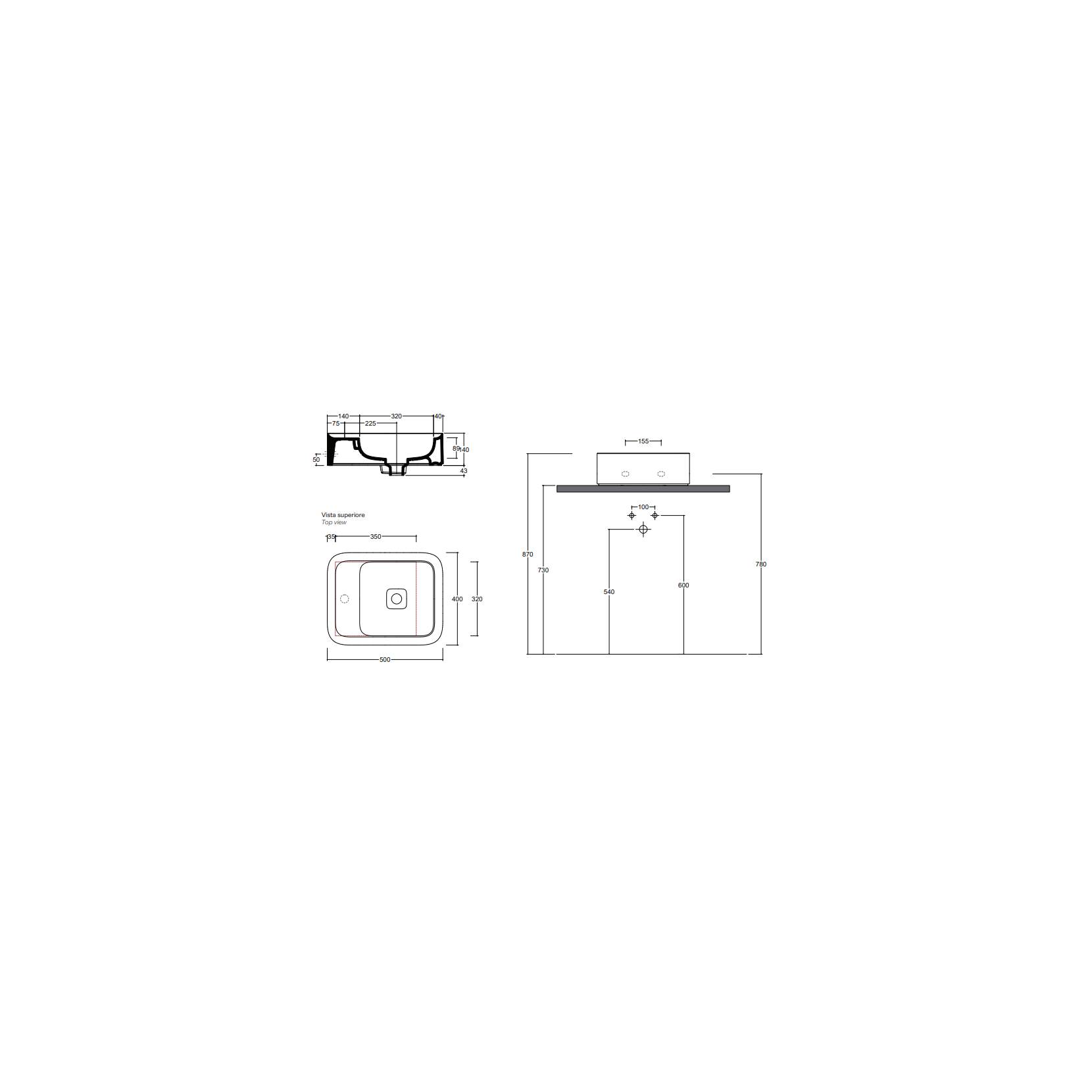 VALDAMA Cameo - Lavabo en céramique à poser et suspendu 50 x 40 h14.
