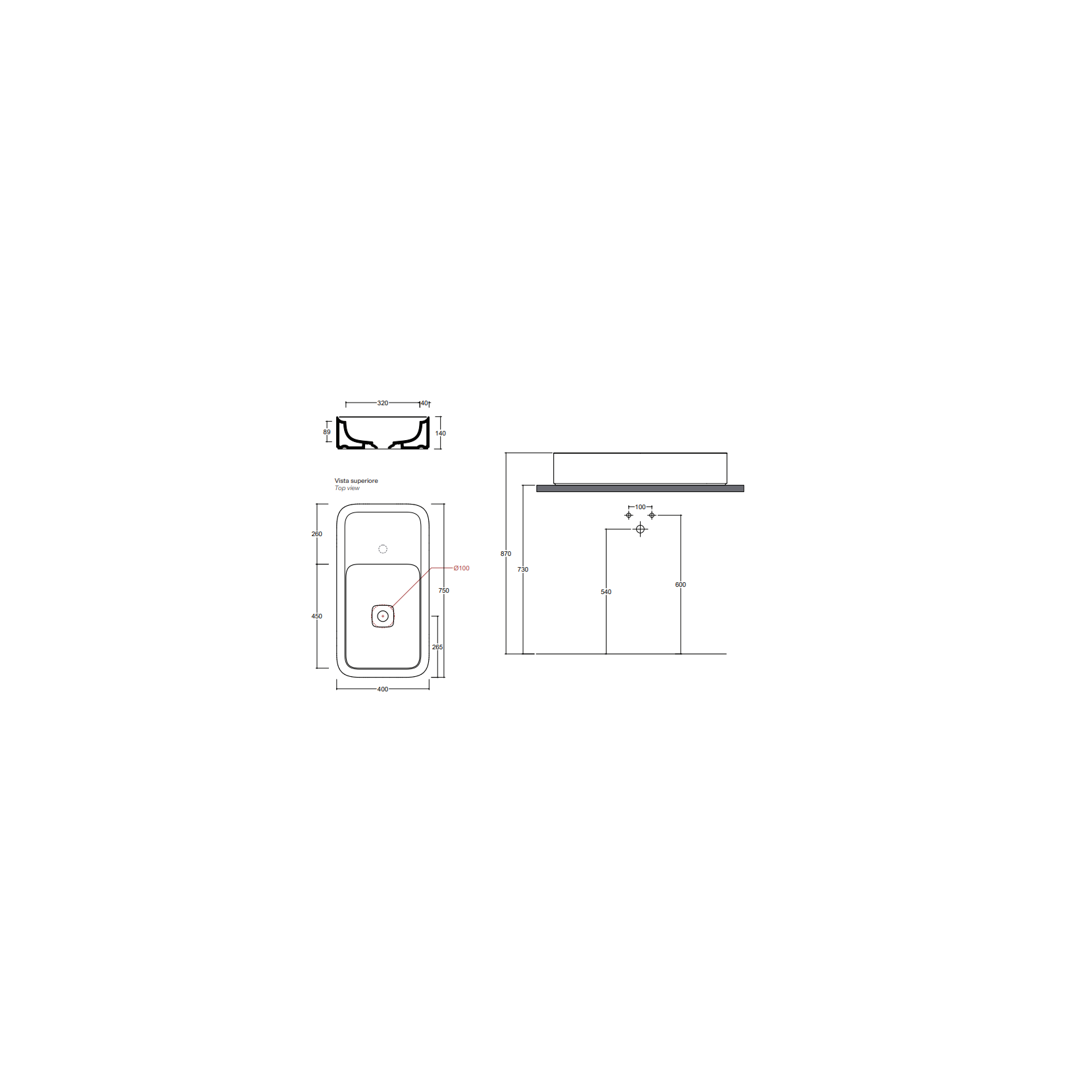 VALDAMA Cameo - Lavabo en céramique de table 75 x 40 h14 plateau 26