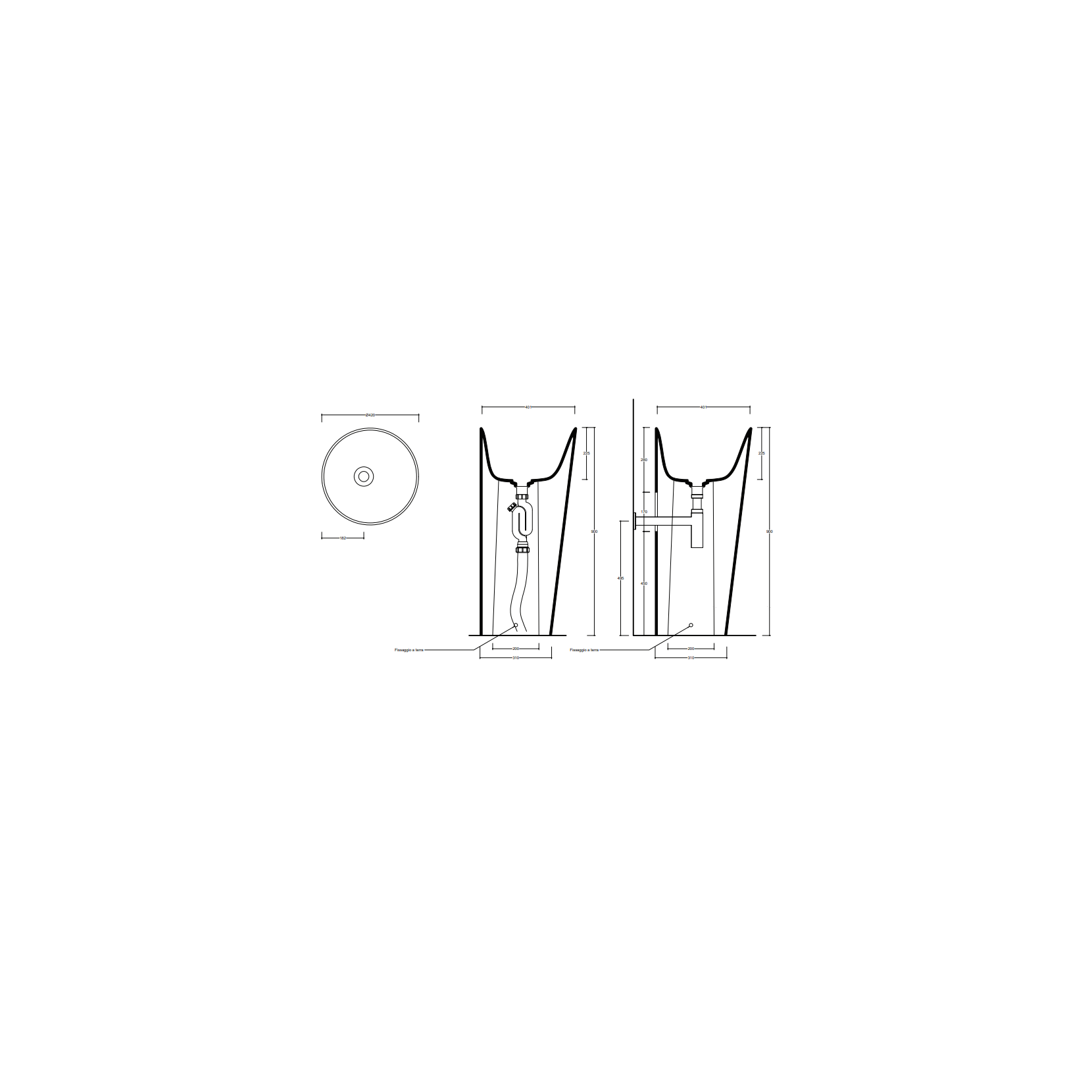 VALDAMA Il - Lavabo en céramique avec vidange murale / sol.