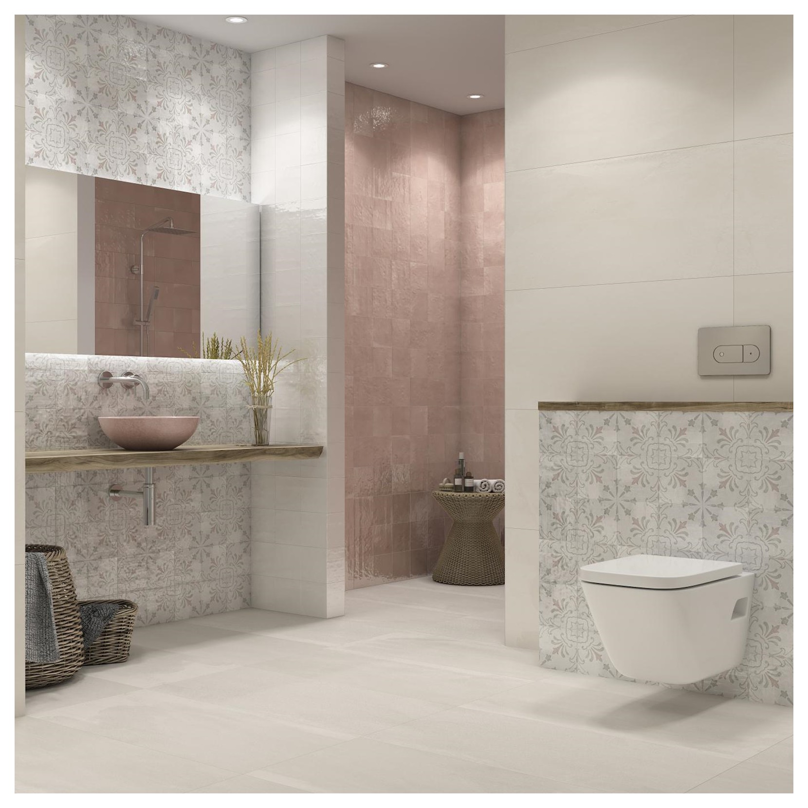 Lavabo en porcelaine peinte à la main, avec finition béton dégradé. Coordonné à la ligne BERLIN de DUNE, il est combiné avec des carreaux et des accessoires de la même collection.